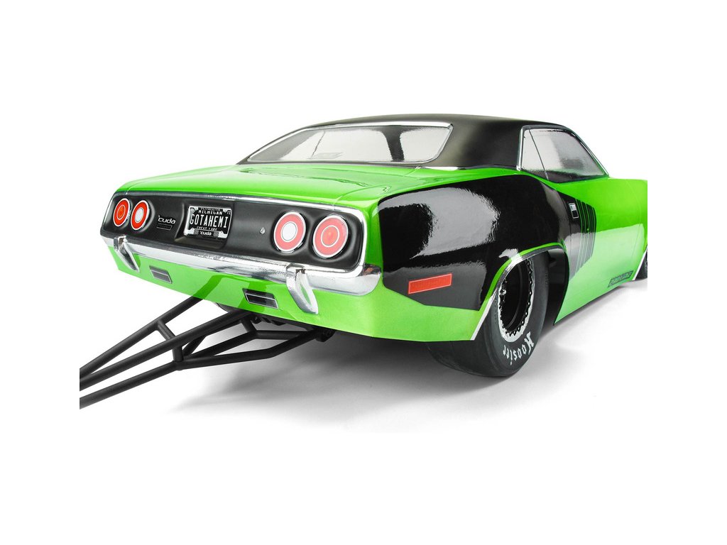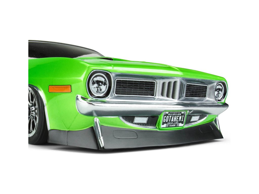 Dravý vzhled karosérie 1972 Plymouth Barracuda pro horké pneumatiky. Přeměňte svůj model auta Losi® 22S™ No Prep Drag Car, Slash® 2wd nebo AE DR10, apod., na zajímavý stroj s karosérií pro Dragstery. V balení je arch s řadou obtisků pro nazdobení karosérie. Doporučujeme použít přední pneumatiky Hoosier 2,2" Drag Racing (PRO10158203) vpředu a pneumatiky Hoosier Drag Slick SC 2,2"/3,0" Drag Racing (PRO10157203) vzadu, kola Pomona Drag Spec a Stinger Wheelie Bar, pro maximální výkony