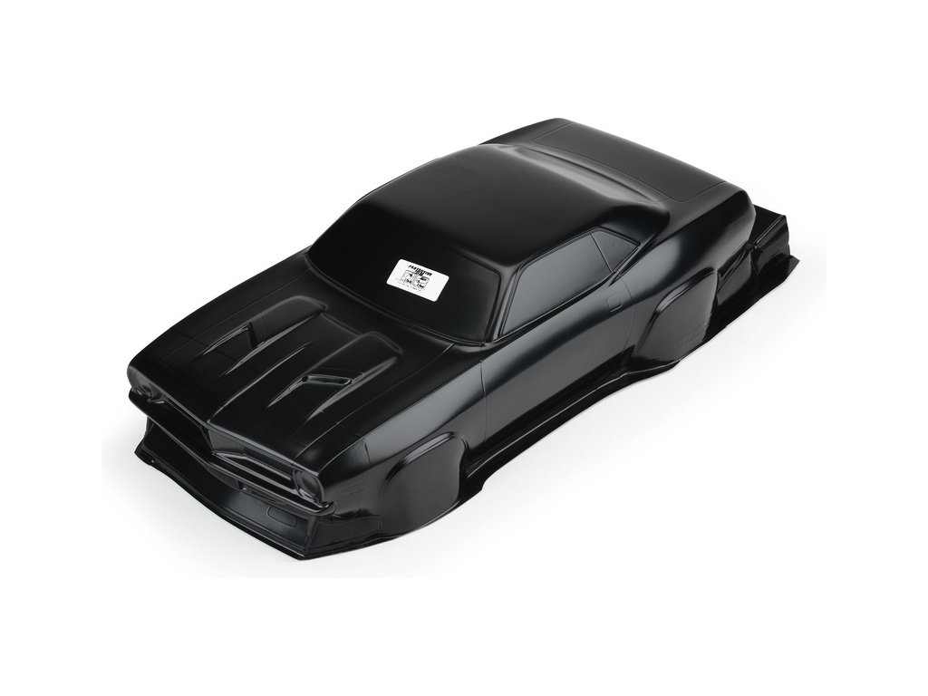 Pro-Line karosérie černá 1972 Plymouth Barracuda, pro RC modely aut Drag Car v měřítku 1:10, rozvor 335mm, délka 584mm, šířka 292mm. Vyrobeno z odolného lexanu.