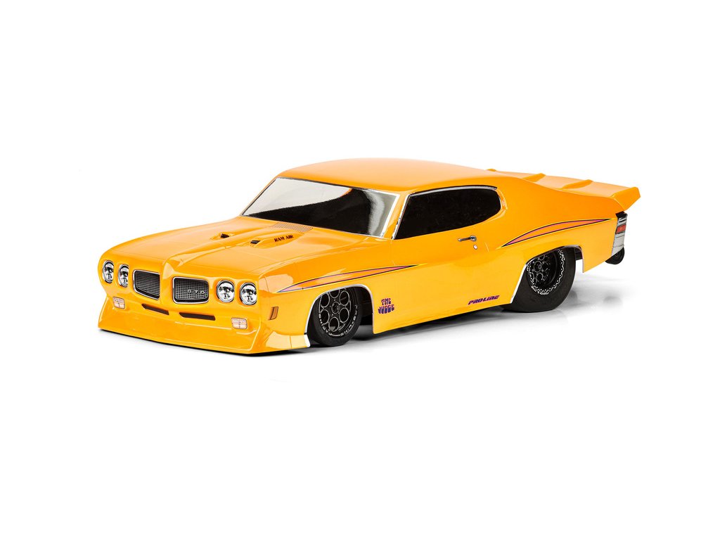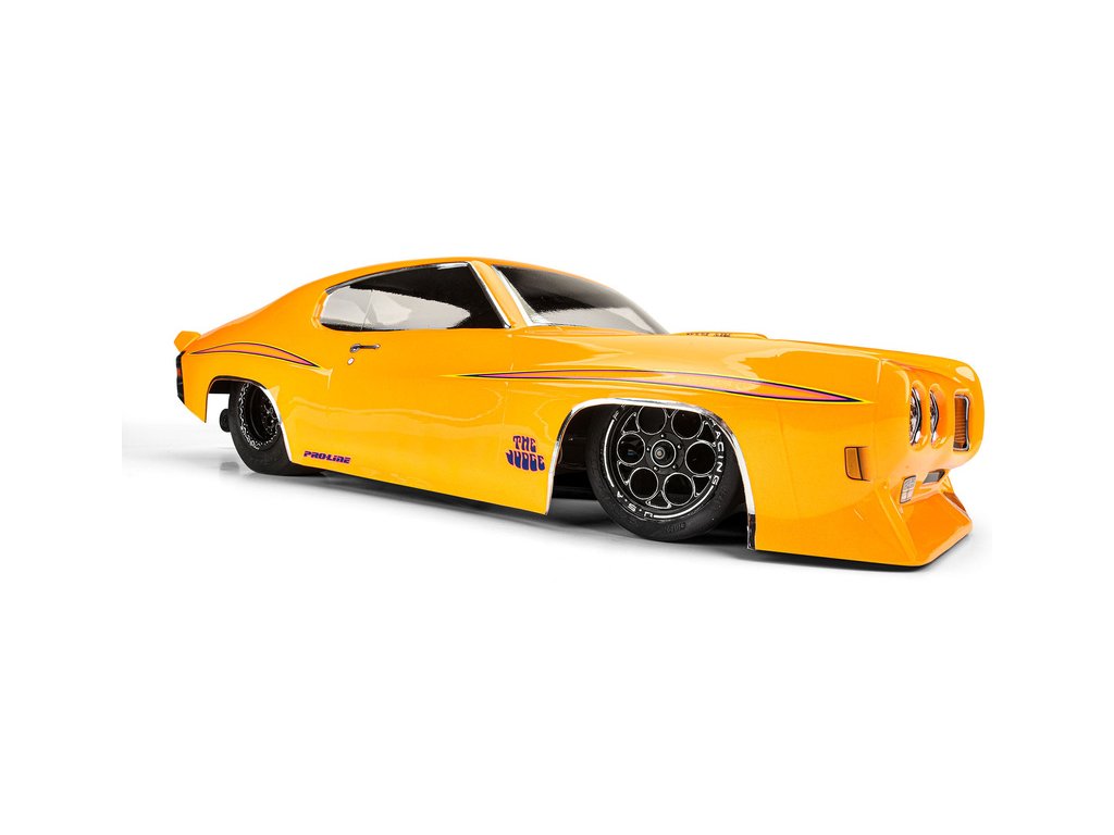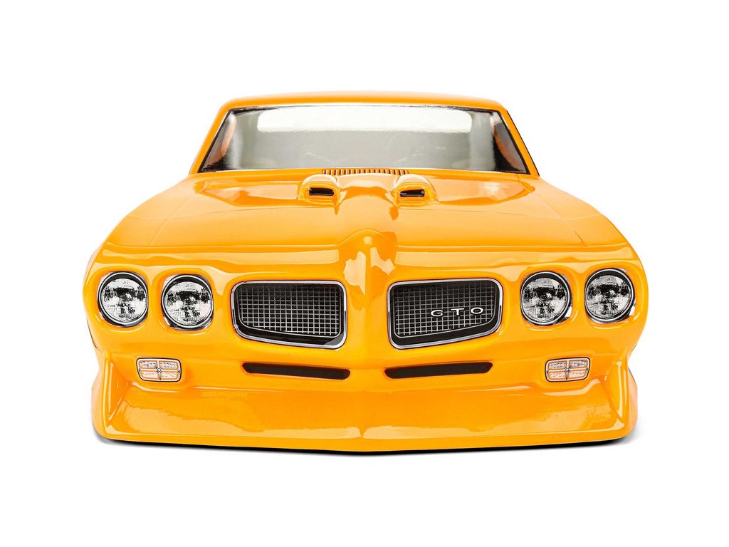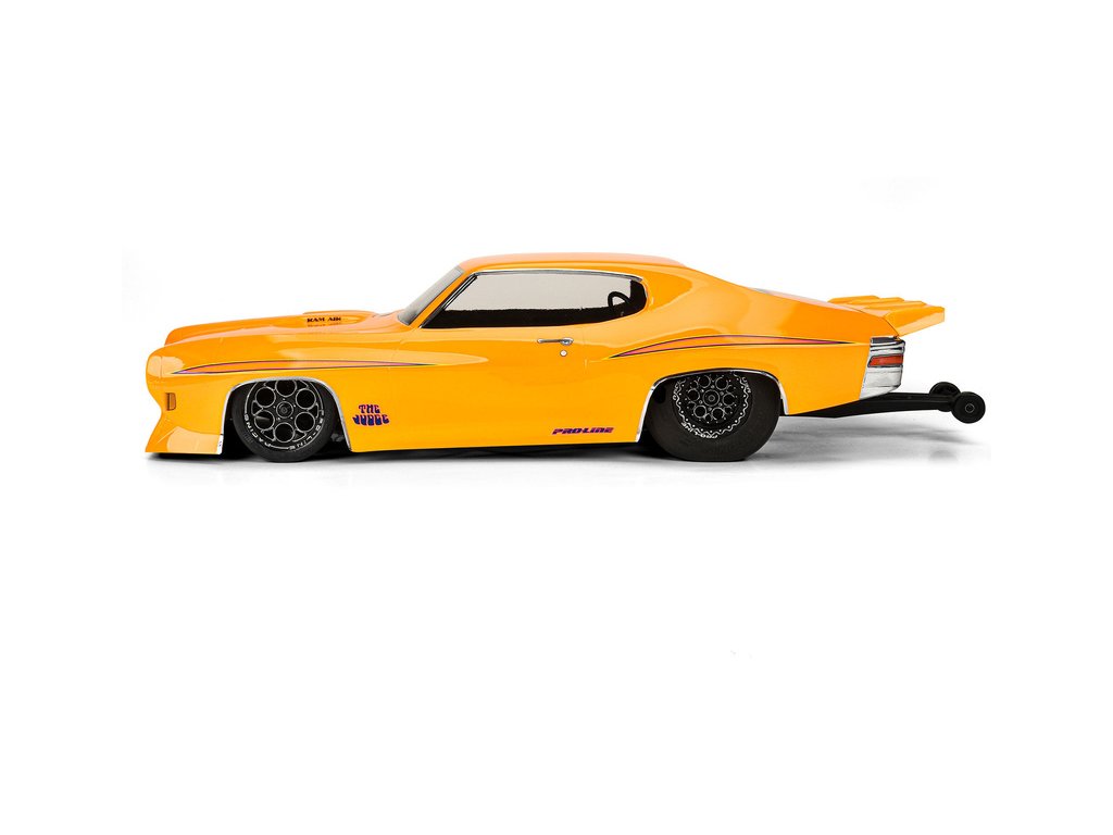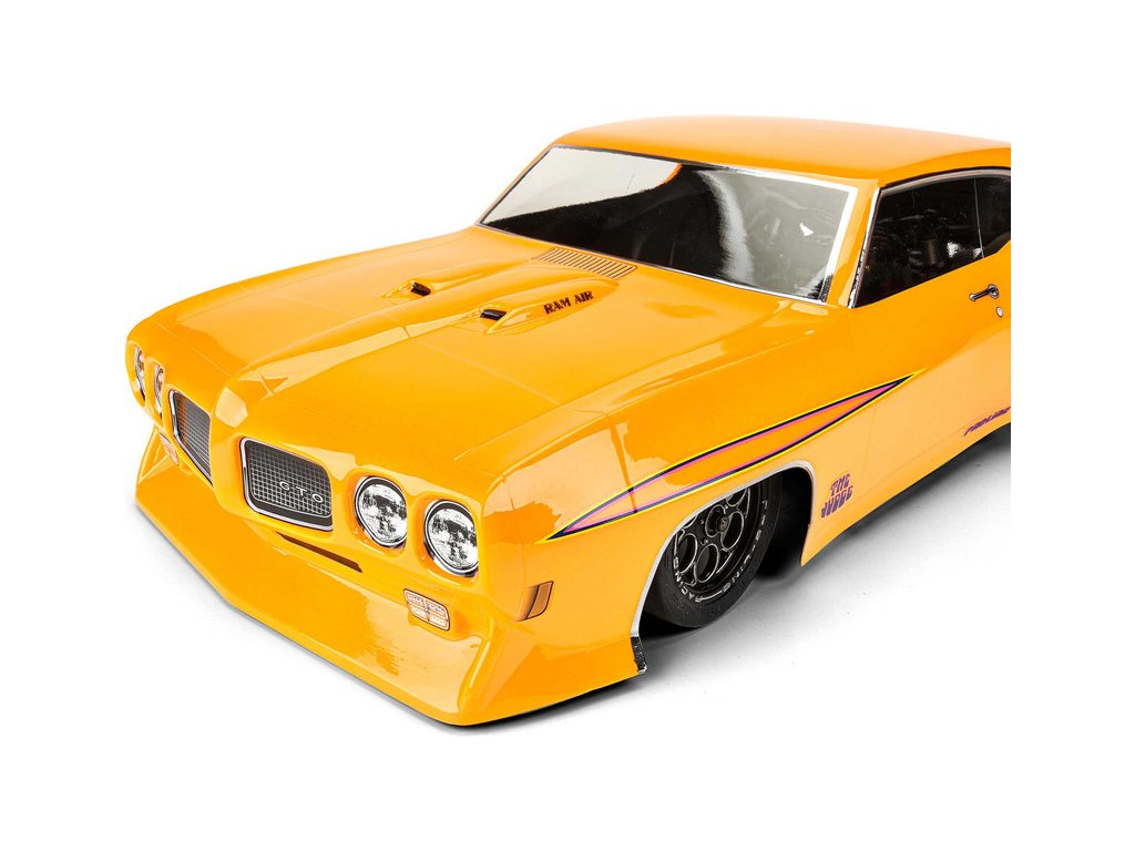 Pro-Line představuje ikonickou čirou karoserii Pontiac GTO z roku 1970 na závodní dráhy. Přední část je vybavena dělenou přední maskou a dvojitými světlomety na každé straně stejně jako detaily pod přední maskou je možný pouze díky patentované technologii tvarování Pro-Line. Karosérie GTO byla věrně vytvořena v měřítku 1:10 a vyladěna speciálně pro závody dragsterů. Karoserie je průhledná a dává vám možnost nalakovat si karoserii podle svých představ. Pro-Line obsahuje zadní křídlo ve stylu drag, které vás udrží rovně na trati. Pokud jste fanouškem Pontiac GTO, pak je to nezbytná karoserie pro váš vůz. Získejte své vlastní GTO z roku 1970 ještě dnes!