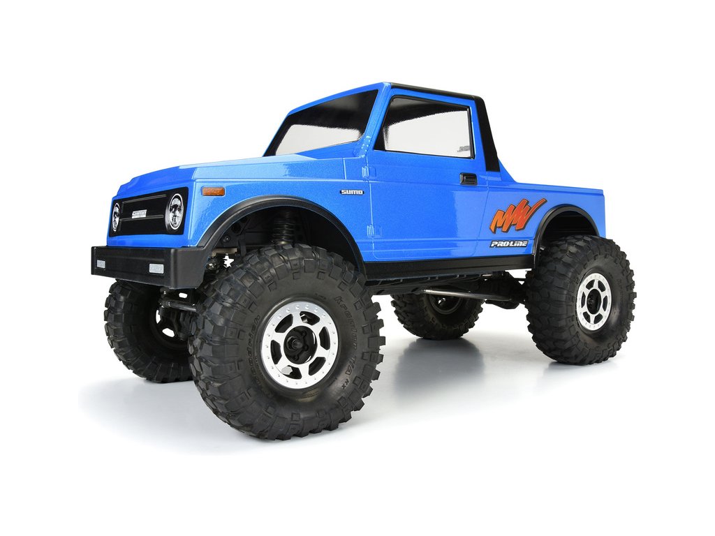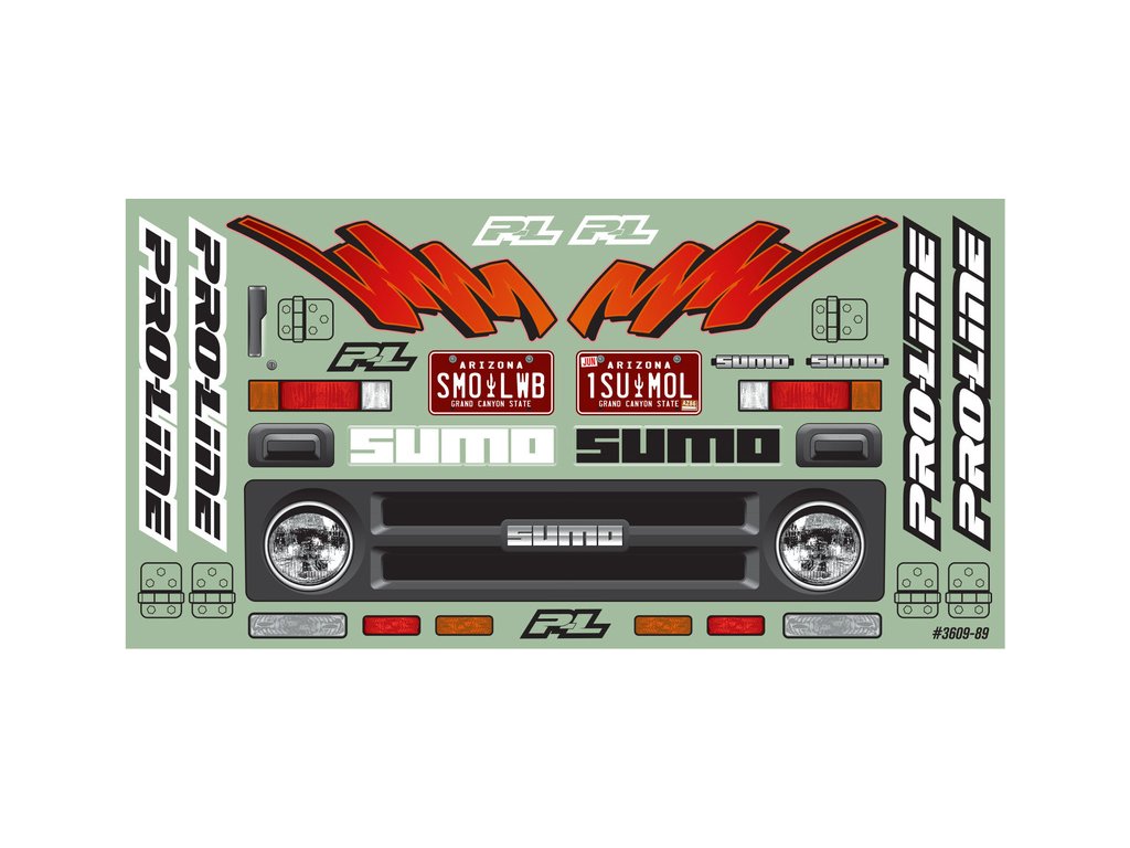 Karoserie Pro-Line 1:10 Sumo s rozvorem 313 mm. Vhodné pro expediční a crawler RC modely (SCX10). Čirá karoserie z odolného lexanu, vyžaduje barvení. Maska oken a obtiskový arch pro dotvoření vzhledu.