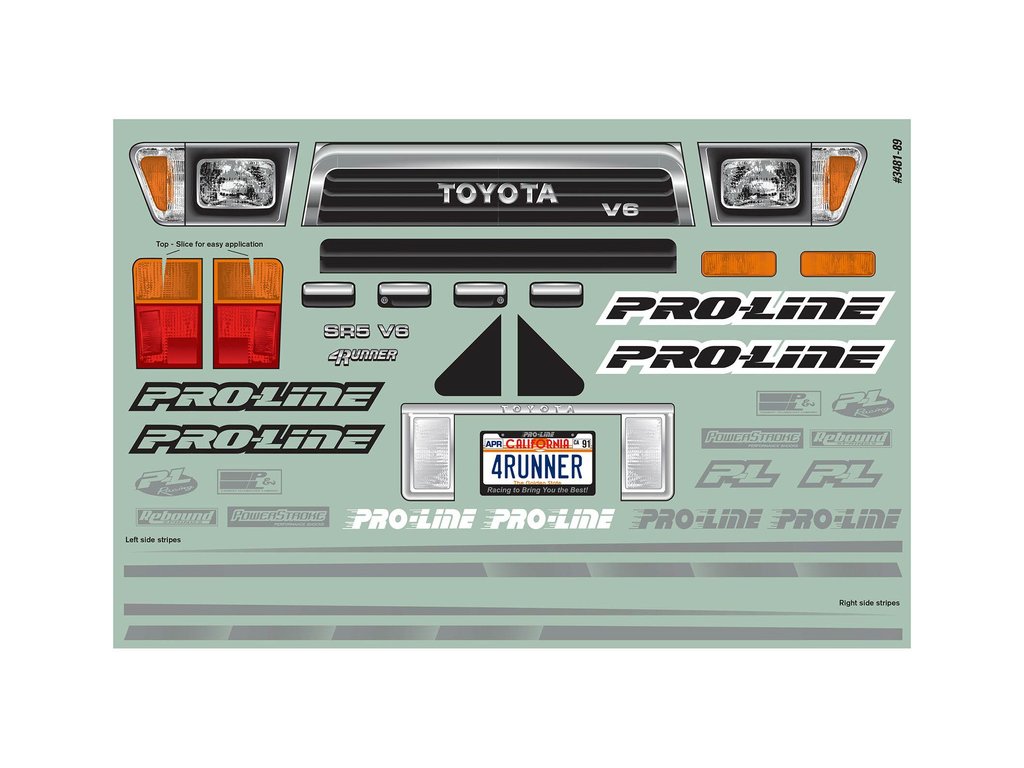 Druhá generace SUV vozů 4Runner tvoří ikonická vozidla, které slouží jako základ mnoha plnohodnotných off-road aut. Další plně licencovanou karoserií od Pro-Line je Toyota 4Runner z roku 1991! Nyní můžete mít svůj vlastní pro svůj maketový Crawler s originální karosérií od Toyoty. Součástí balení jsou samolepky, kterými si vytvoříte přední masku se světly, doplníte nápisy a detaily.