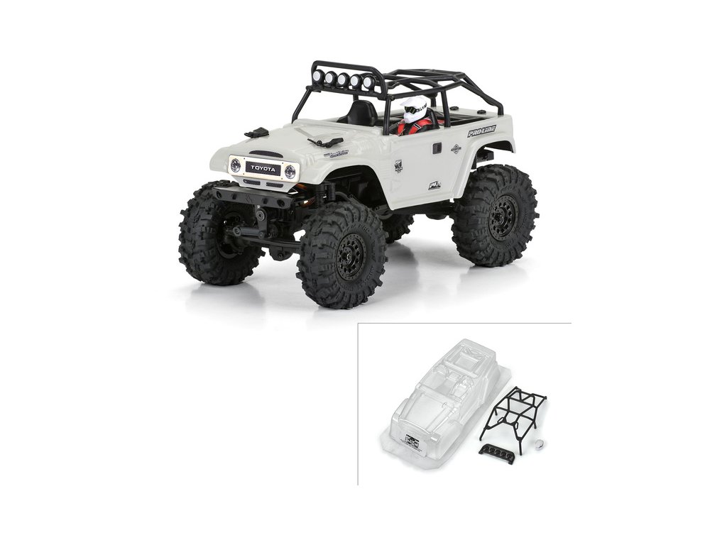 Pro-Line karosérie čirá 1979 Toyota Land Cruiser FJ40, pro RC modely aut SCX24 v měřítku 1:24, rozvor 132mm, délka 193mm, šířka 80mm. Vyrobeno z odolného lexanu.