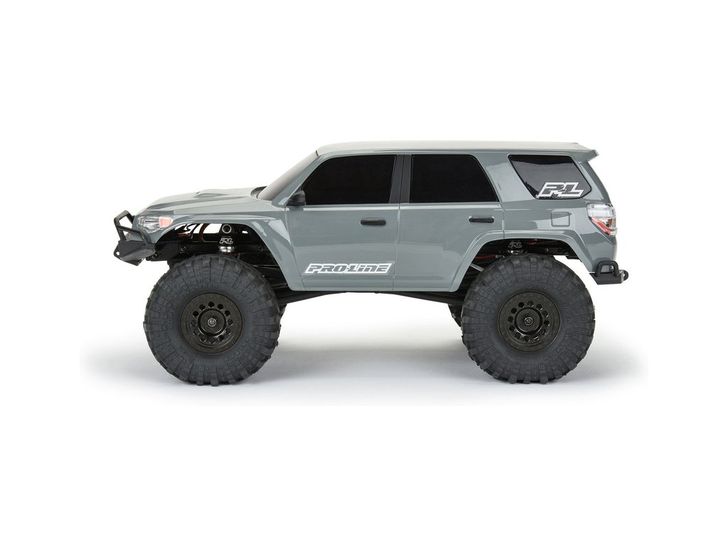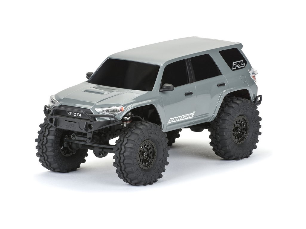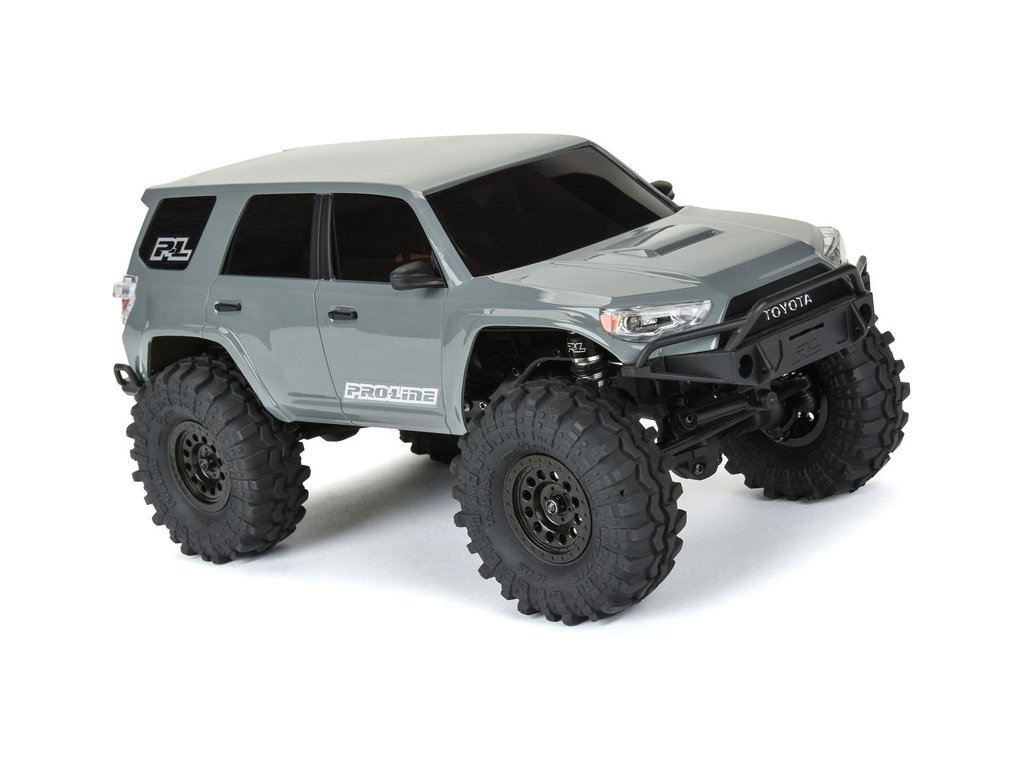 Pro-Line karosérie šedá, sestavená Toyota 4Runner 2023, pro RC modely aut Axial SCX24 v měřítku 1:24, rozvor 132mm, délka 211mm, šířka 84mm. Vyrobeno z odolného plastu. Včetně maketových dílů a LED osvětlení.