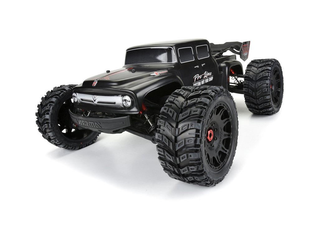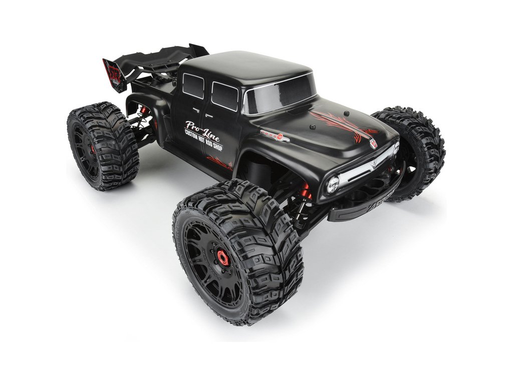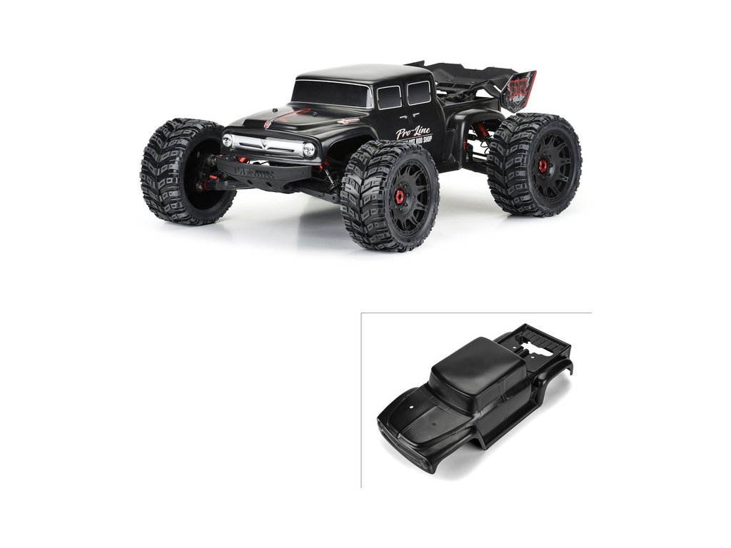Pro-Line karosérie černá Ford F-100 Bash Armor od Pro-Line, pro RC modely aut Kraton 8S v měřítku 1:5, rozvor 480mm, délka 686mm, šířka 274mm. Vyrobeno z odolného silného materiálu Bash Armor. Obrázek kompletního modelu je pouze ilustrativní.