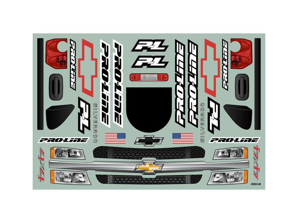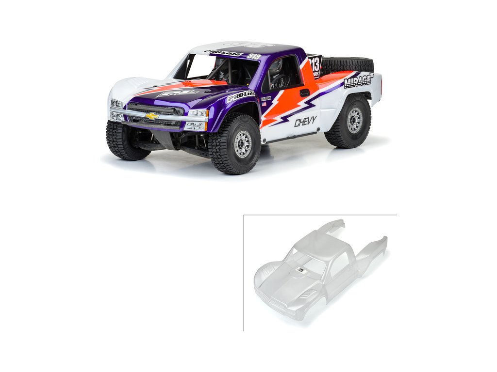 Pro-Line oficiálně licencovaná karosérie v měřítku 1:7 z roku 2007 Chevy Silverado, je určena pro RC modely aut Unlimited Desert Racer. Rozvor 419mm, délka 660mm, šířka 338mm, výška 193mm. Vyrobeno z odolného lexanu, montážní příslušenství.