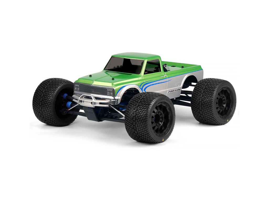 Pro-Line karosérie čirá 1972 Chevy C-10 Long Bed: Monster Truck, pro RC modely aut 1:8, rozvor 320mm, délka 475mm, šířka 180mm. Vyrobeno z odolného lexanu. Vhodná pro Monster Truck 1:8.
