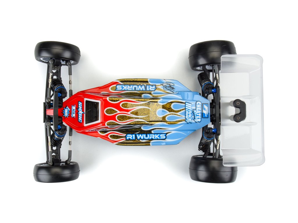 Řada závodních karoserií Axis buggy 1:10 má optimalizovanou konstrukci, což zlepšuje ovladatelnost vaší buggy v nejobtížnějších podmínkách na trati. Nízko posazená poloha karosérie se vyznačuje zkoseným čelním sklem a dlouhou středovou ploutví pro ideální stabilitu a boční záběr, což zkracuje časy na kolo. Celkový sklon karosérie přispívá k lépe řiditelnému autu s karosérié Axis, přičemž karosérie má dostatečně velkou vůli kolem převodovky, podvozku a přepážky.