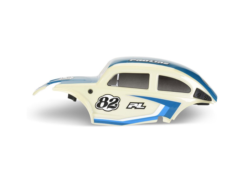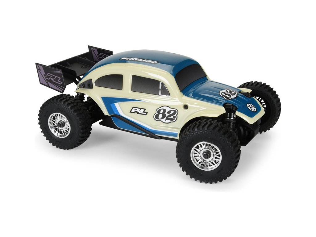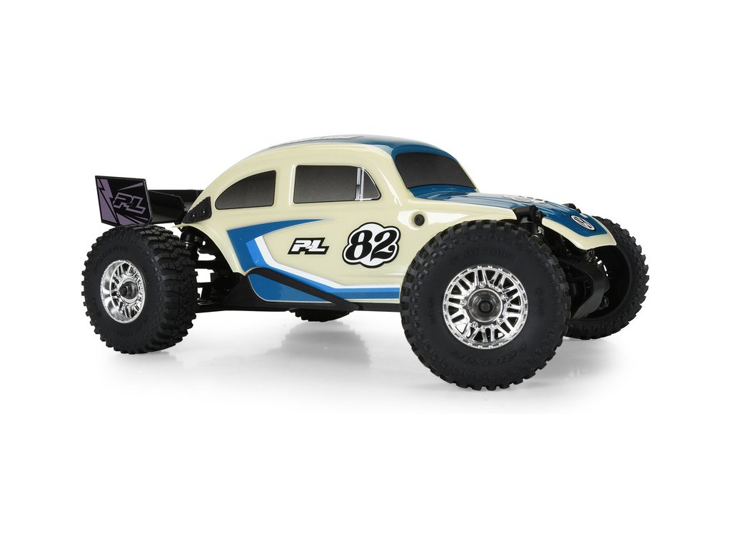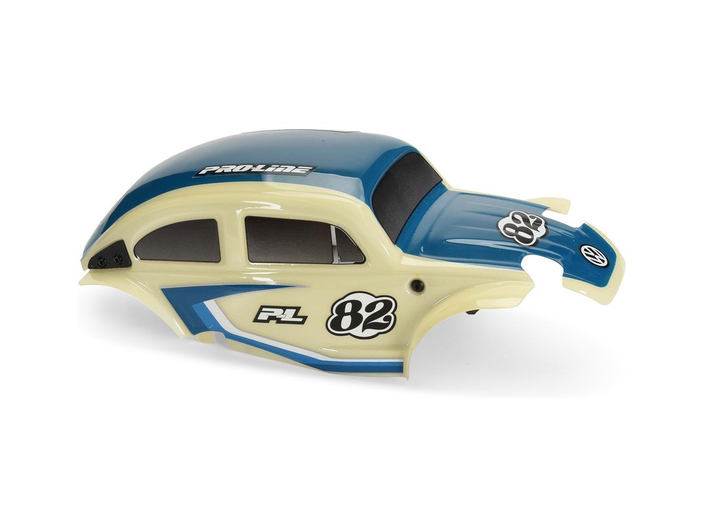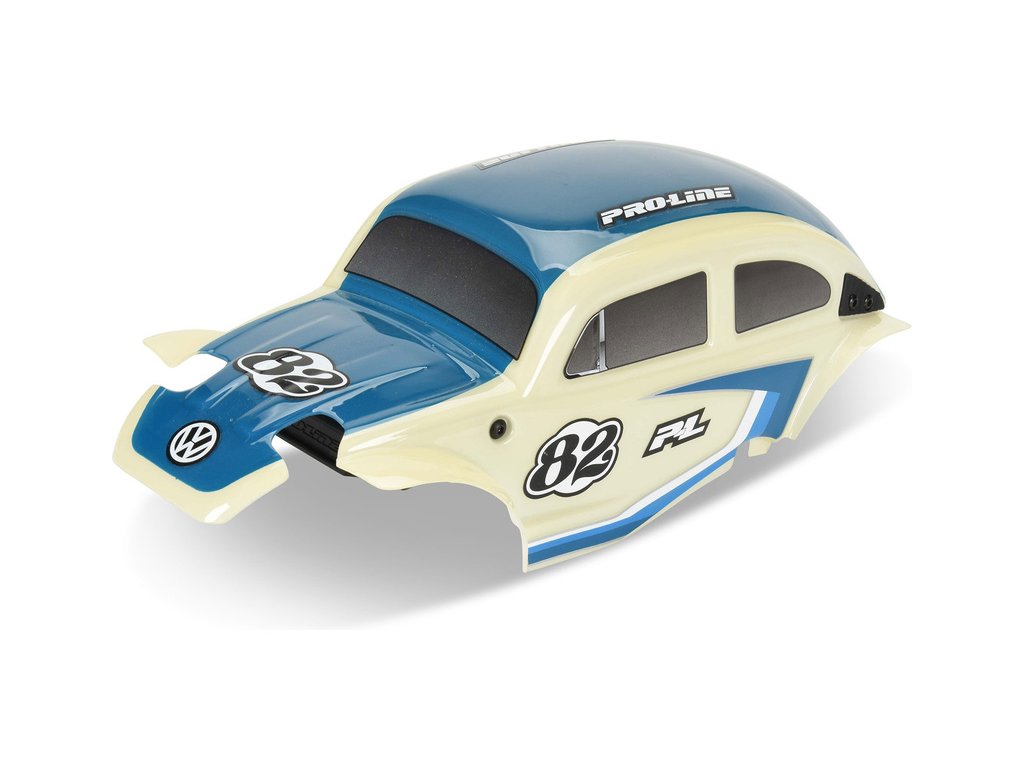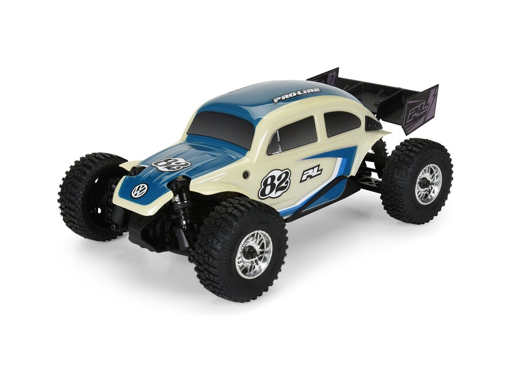 Pro-Line nabarvená karosérie Class 1 VW brouk modrá (1ks) s obsaženými koly Chrome Diablo s unašečem 12 mm a s pneumatikami Flat Iron M/T (4ks). Určeno pro RC modely aut Arrma Typhon GROM v měřítku 1:14. Karoserie vyrobena z odolného polykarbonátu.