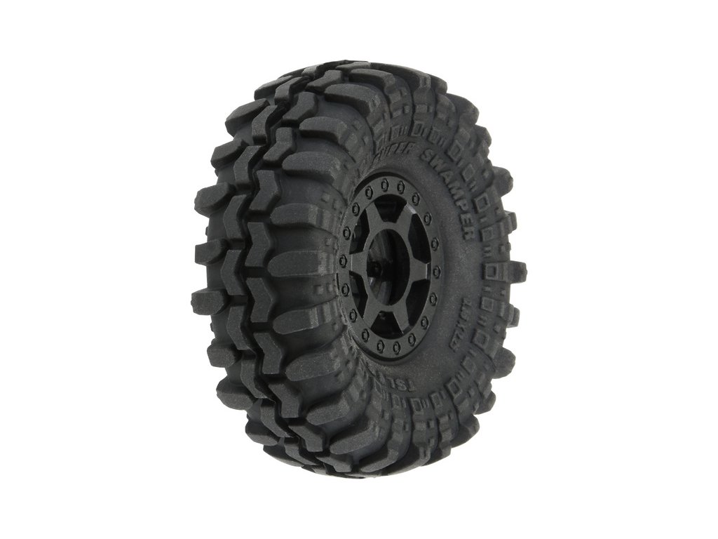 Stejně jako pneumatiky Pro-Line pro velikost 1:10, jsou i tyto mini pneumatiky navrženy tak, aby poskytovaly maximální přilnavost v jakémkoli terénu, o který se vaše RC auto Mini Rock Crawler pokusí. Pneumatiky se vyznačují extrémně agresivním vzorkem běhounu. S průměrem pneumatiky 57mm a šířkou 22mm", je Super Swamper TSL SX jednou z největších mini pneumatik! Je vyrobena ze super měkké směsi, která pomáhá vašemu autu SCX24™ vyšplhat se do nových výšin. Pneumatiky jsou vybaveny měkkými pěnovými vložkami.