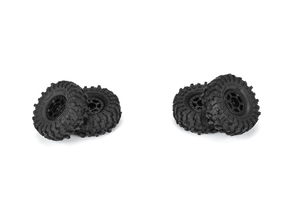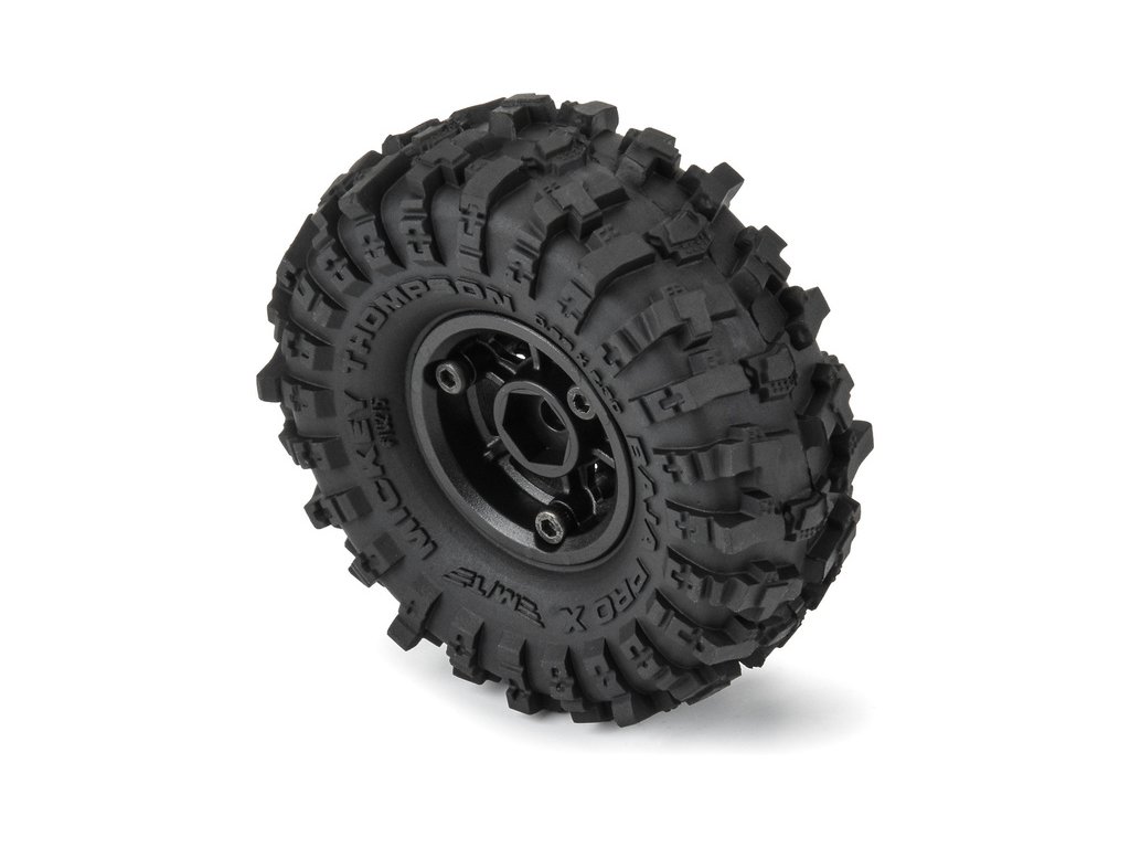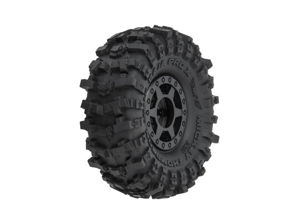 Kompletní kola Pro-Line pro RC modely aut 1:24 crawler, expediční. Rozměr ⌀58x23 mm. 3dílný disk Mini Holcomb, pro snadnou montáž pneu, má černou barvu, offset +2 mm. Pneumatiky 1" Mickey Thompson Baja Pro X, tvrdost směsi střední. Unašeč je šestihran 7 mm. Vložka Open Cell.