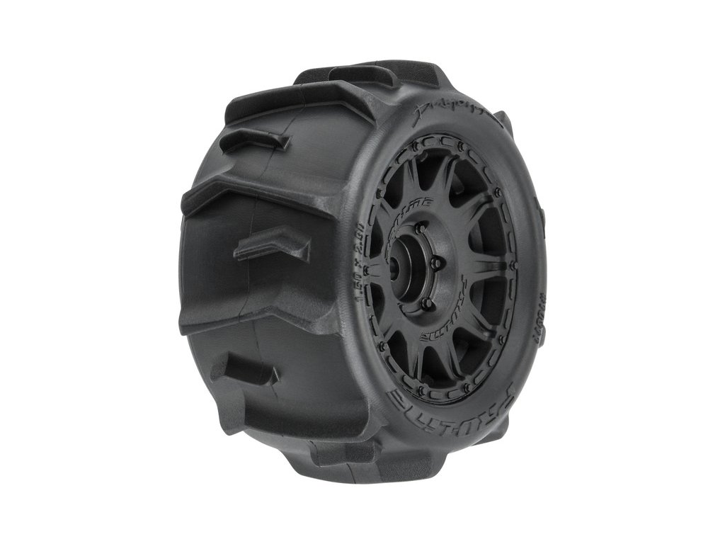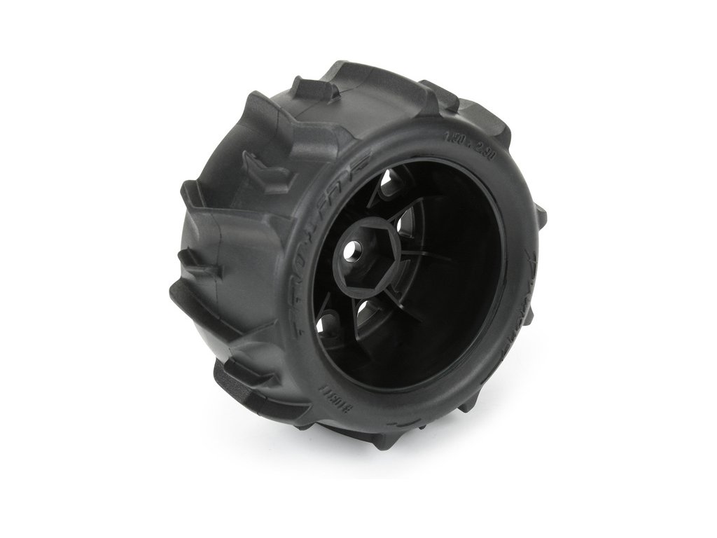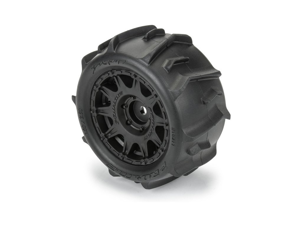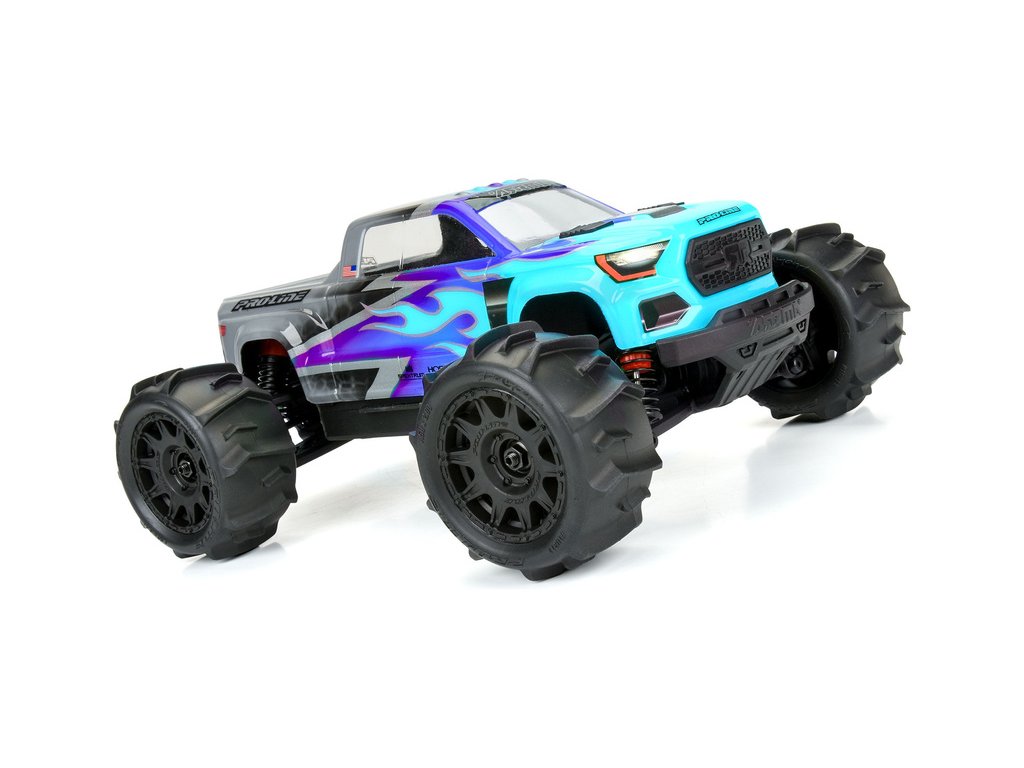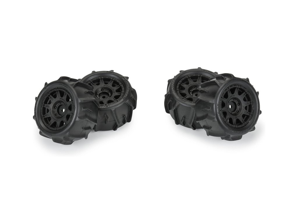 Kompletní kola Pro-Line pro RC modely aut 1:18 Granite GROM. Rozměr ⌀74x38 mm. Disk Raid má černou barvu. Pádlové pneumatiky Dumont 1.9". Unašeč je šestihran 12mm. Vložka Open Cell.