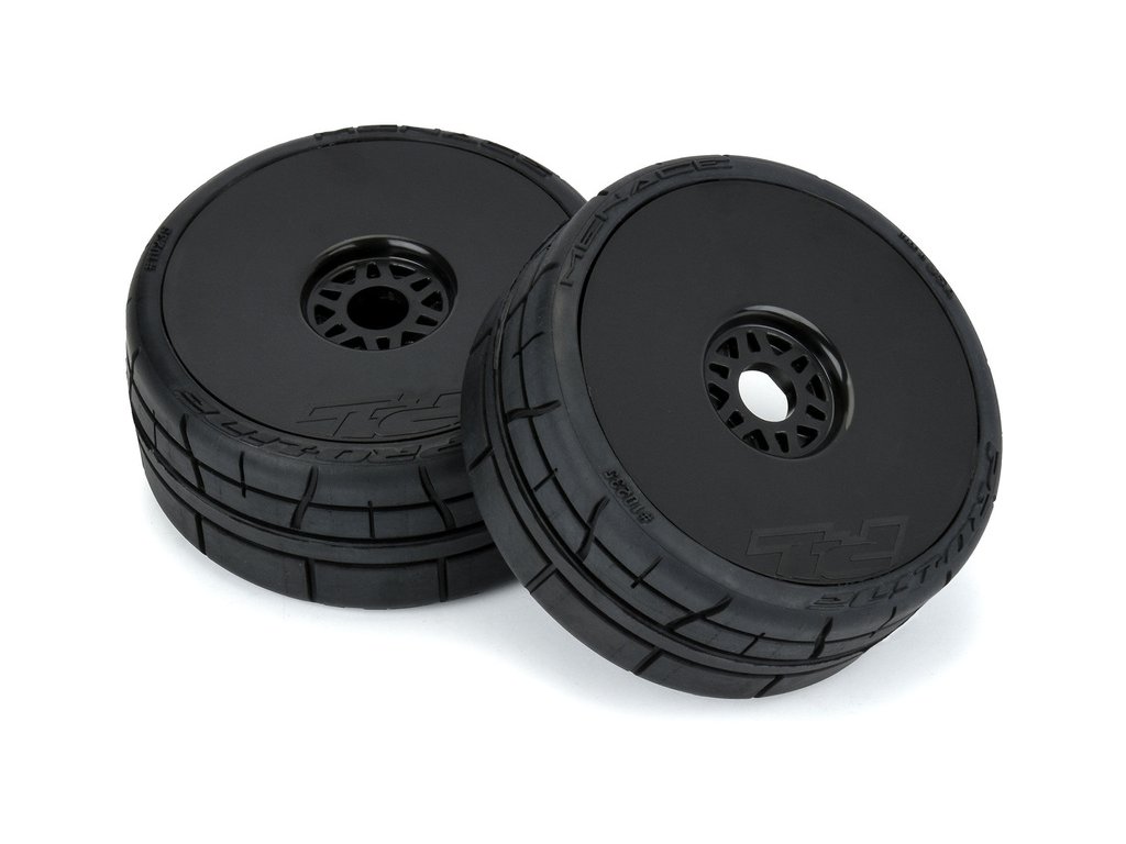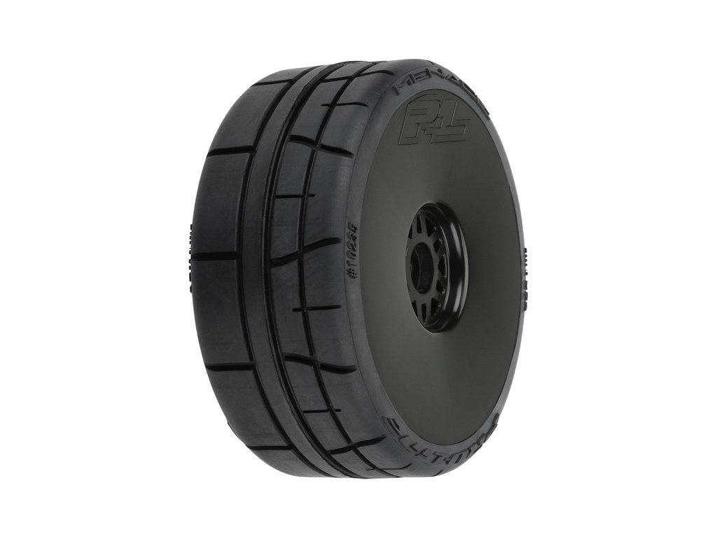 Kompletní kola Pro-Line 1:8 s pneumatikami Menace HP BELTED Speed Run, disky Mach 10 černý, šestihran H17 (2 ks v balení). Kalo jsou vhodné pro RC auta 1:7 Limitless, Infraction, Felony, Typhon a další v měřítku 1:7 a 1:8 s šestihrany 17mm.