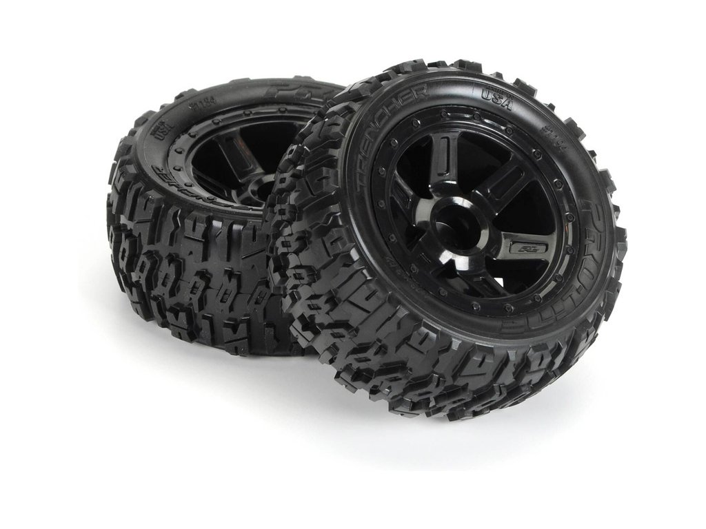 Kompletní kola Pro-Line pro RC modely aut 1:16. Rozměr ⌀92x43 mm. Disk Desperado má černou barvu. Pneumatiky Trencher M2 2.2", tvrdost směsi M2 (střední). Unašeč je šestihran 12 mm.