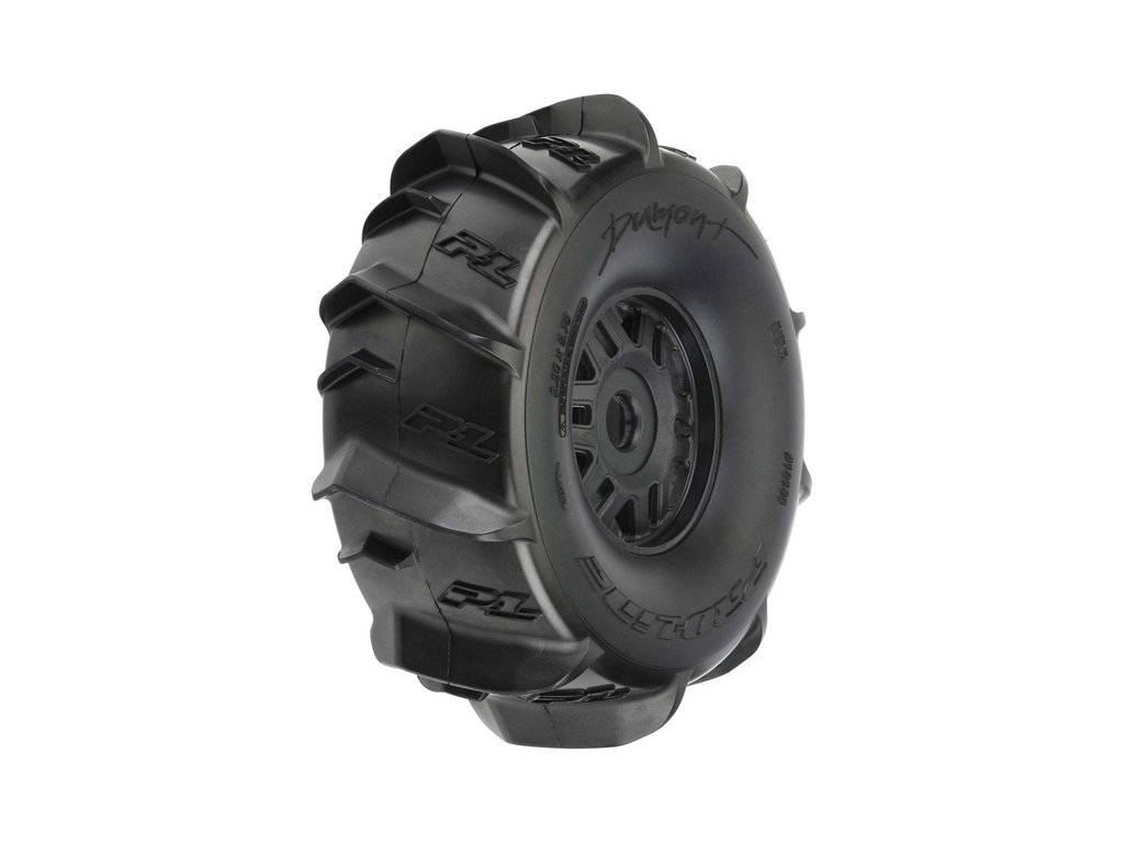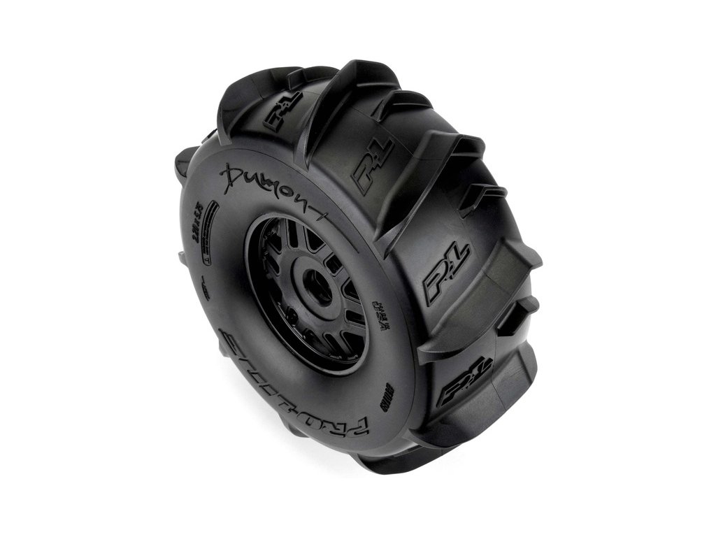 Kompletní kola Pro-Line pro RC modely aut 1:7. Rozměr ⌀146x56 mm. Disk má černou barvu. Pádlové pneumatiky Dumont 2.4/3.3, tvrdost směsi M2 (střední). Unašeč je šestihran 17 mm.