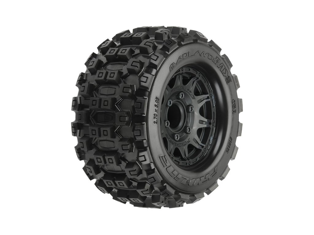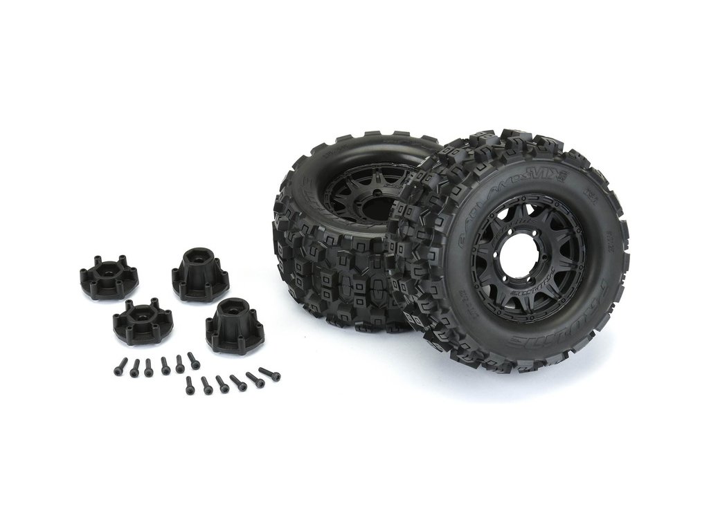 Kompletní kola Pro-Line pro RC modely aut 1:10. Rozměr ⌀128x69 mm. Paprskový disk Raid má černou barvu. Pneumatiky 10 Badlands MX28 2,8“ MT, tvrdost směsi M2 - střední. Unašeč je šestihran 12 mm (vyměnitelný adaptér).