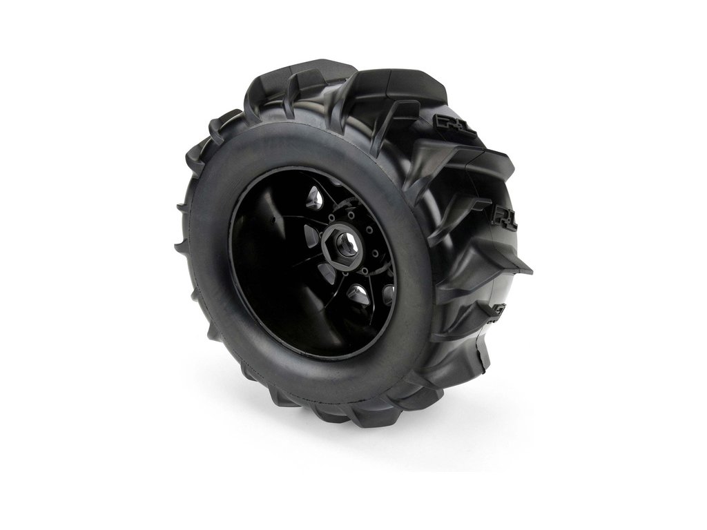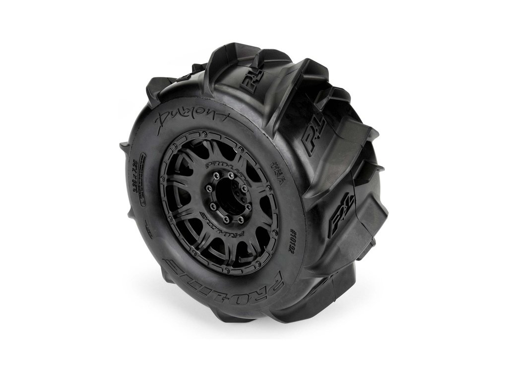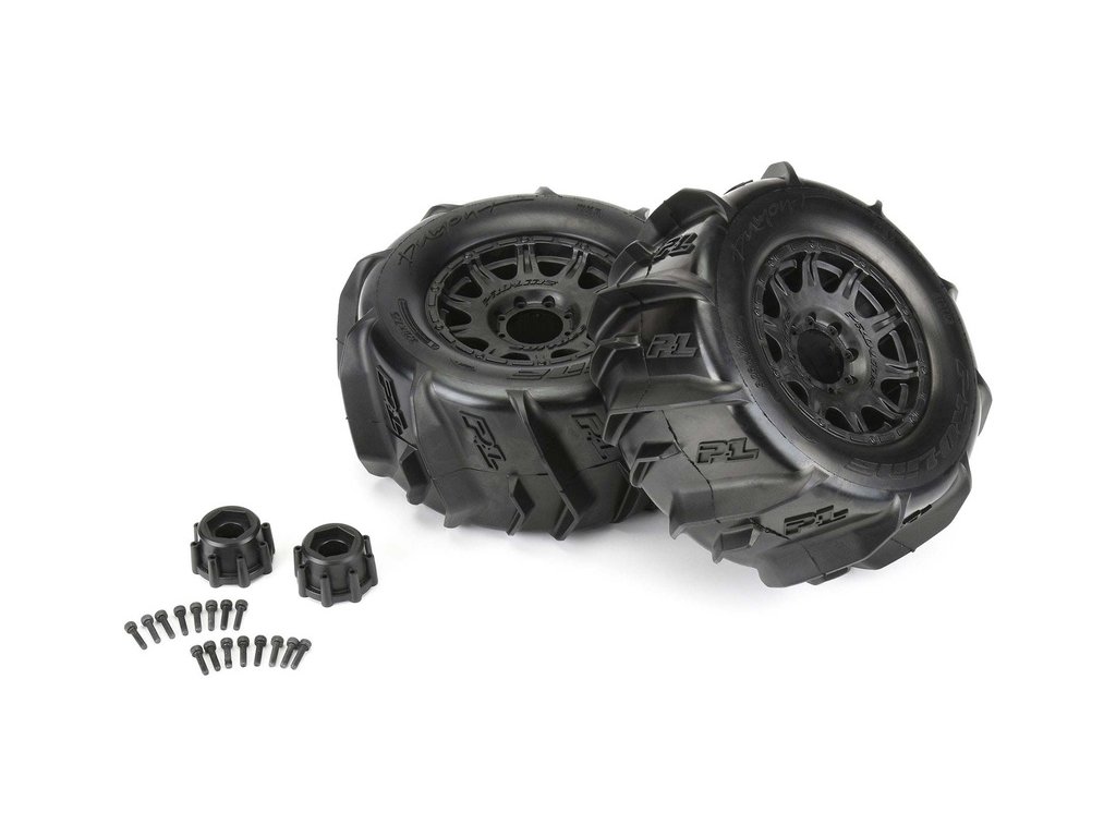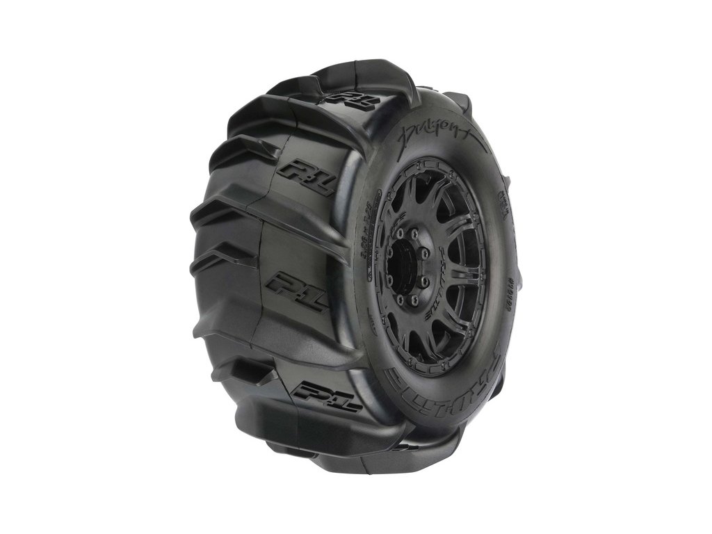 Kompletní kola Pro-Line pro RC modely aut 1:8. Rozměr ⌀184x83 mm. Disk Raid má černou barvu. Pádlové pneumatiky Dumont 3.8" MT, tvrdost směsi Z3 (střední). Unašeč je šestihran 17 mm.