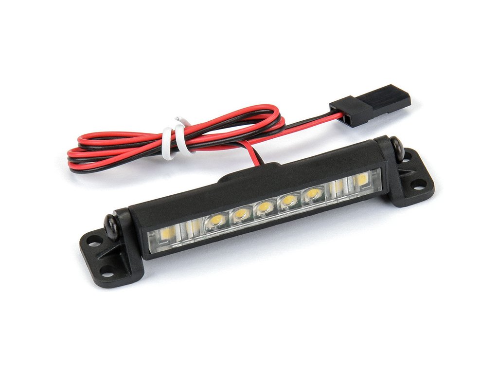 Pro-Line LED světelná lišta Ultra-Slim 2" rovná, použití v autech 1:10. Rozměry 51 x 10 x 8mm, napájení z přijímače 5V nebo 2S nebo 3S LiPol baterie. Nízký profil lišty obsahuje super jasný pásek LED. Montáž jak na střechu nebo jiné panely karoserie, zatímco držáky na trubkové svorky umožňují montáž na klec. Kabel má délku 304mm.