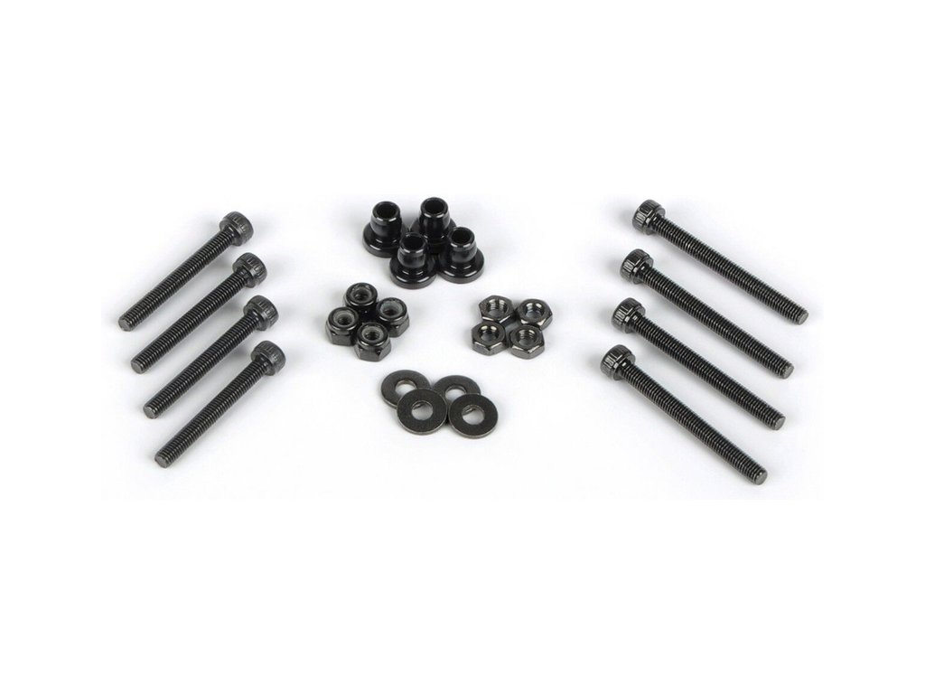 V balení je sada montážního příslušenství: Delrin kulové čepy (4), SHCS šrouby M3x25 (4), šrouby M3x30 SHCS (4), samojistné matice M3 (4), matice M3 (4), podložky M3 (4).