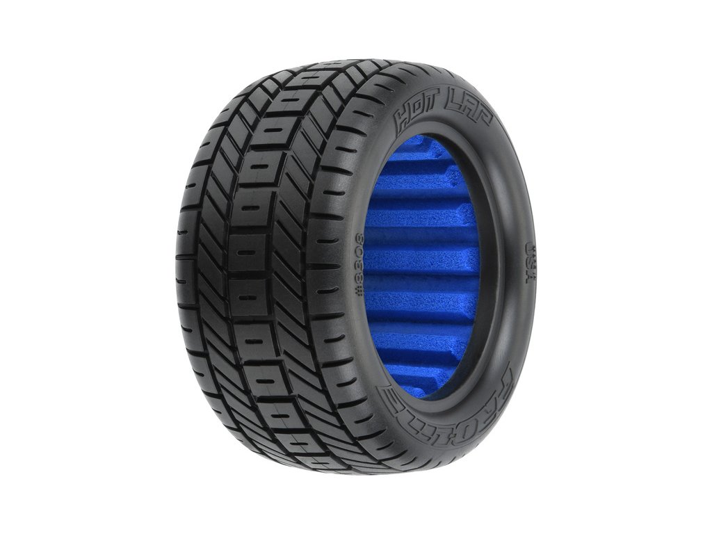 Pár zadních pneumatik Pro-Line 1:10 Hot Lap MC pro Dirt Oval Buggy, se směsí MC (Clay). Součástí jsou také vysoce kvalitní vložky s uzavřenými buňkami. Má hluboký, geometricky drážkovaný běhoun, který poskytuje zvýšený záběr pro maximální výkon. Průměr 86 mm, šířka 42mm, pro disk 2.2".