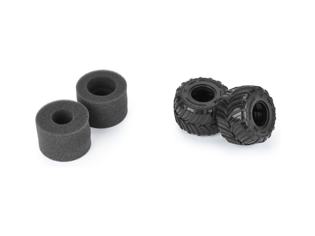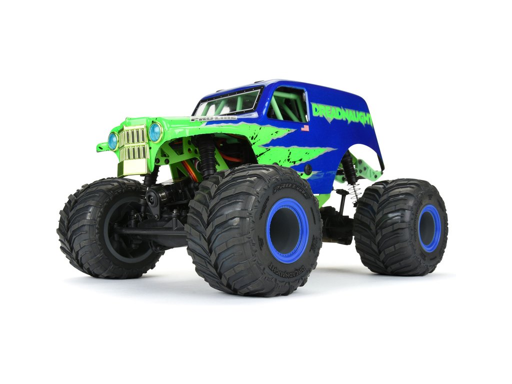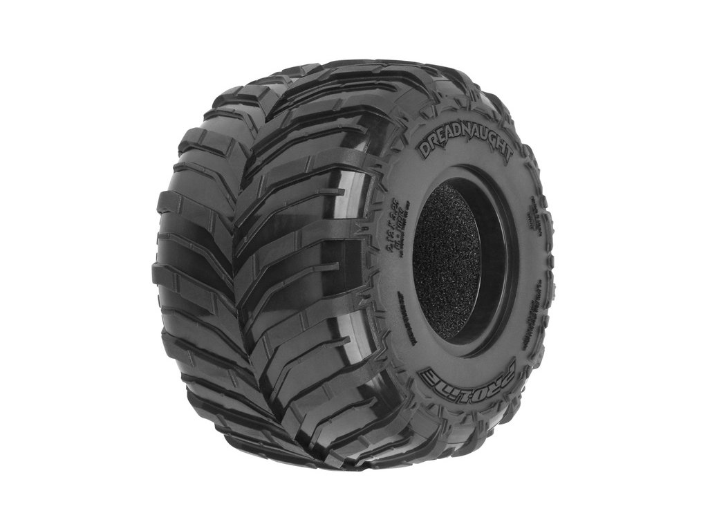 Pneumatiky Pro-line 1.25"/1.75" Dreadnaught, pro RC modely aut 1:18 typu monster truck. Rozměry ⌀83x54mm. Směs M2 (střední). Vložka Open Cell.