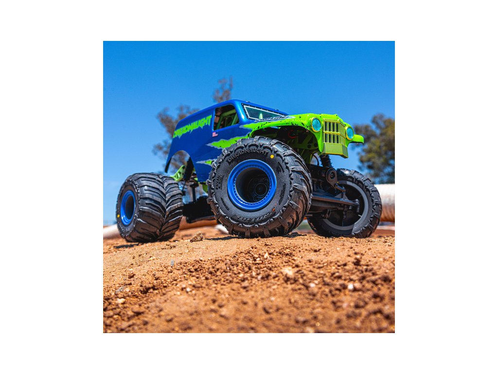 Dopřejte svému mini monster trucku maximální výkon s pneumatikami Dreadnaught od značky Pro-Line, které jsou navrženy speciálně pro model Losi® Mini LMT! Pneumatiky Dreadnaught mají agresivní dezén ve tvaru šipky s příčnými lamelamy dezénu, které zvyšují přilnavost a zároveň dodávají realistický vzhled. Díky použité směsi M2 poskytují výbornou trakci, ideální pro zrychlení a kaskadérské kousky, jako je například wheelie (jízda po zadních kolech).