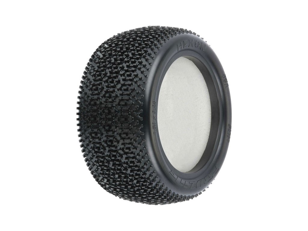 Pneumatiky Pro-line 2.2" Hexon CR3 Carpet zadní (2 ks), pro RC modely aut 1:10 Buggy pro závody na koberci. Rozměry ⌀83x40mm. Směs střední CR3 (Medium Carpet).
