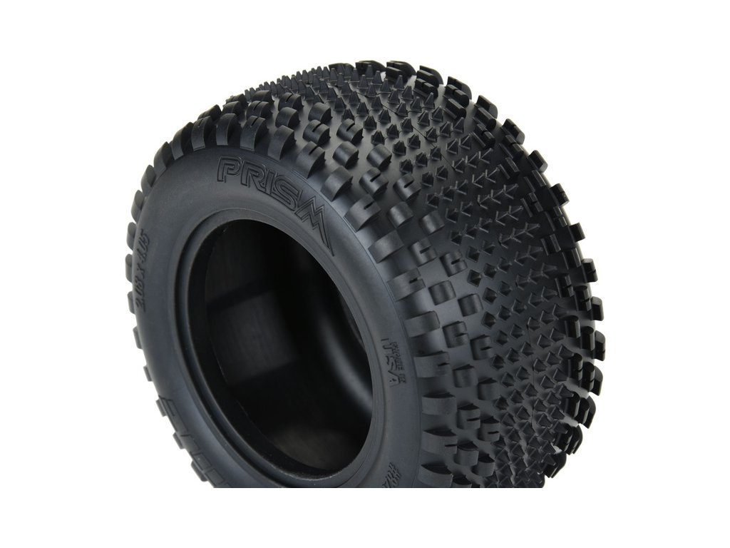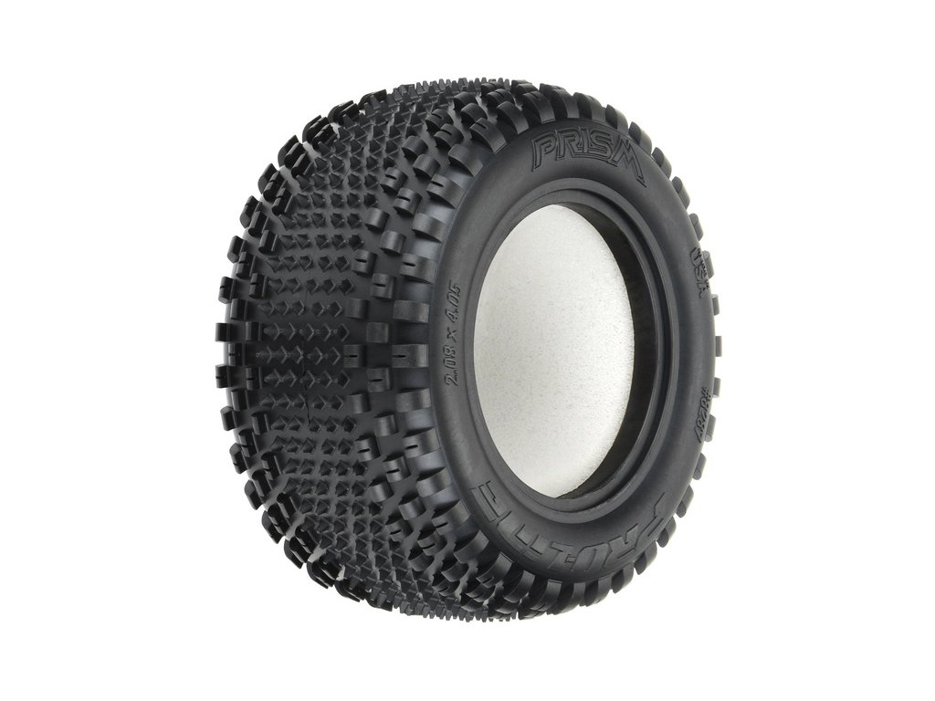 Pneumatiky Pro-line 2.2" Prism T CR3 Carpet přední (2 ks), pro RC modely aut 1:10 Stadium Truck pro závody na koberci. Rozměry ⌀103x53mm. Směs střední CR3 (Medium Carpet).