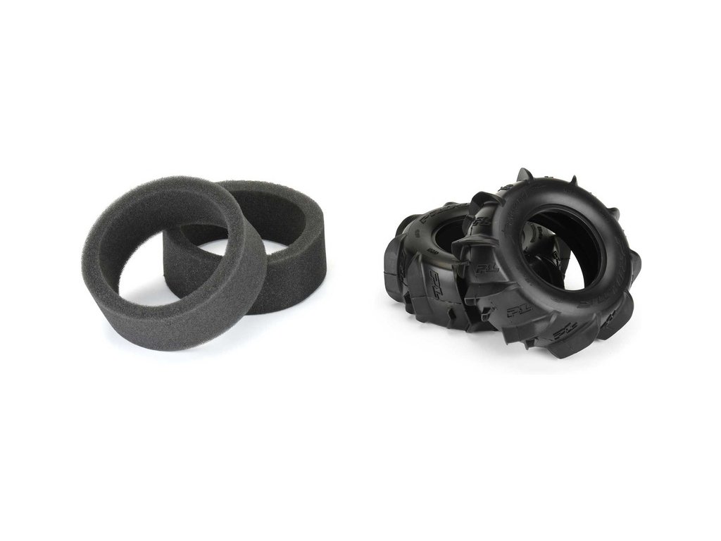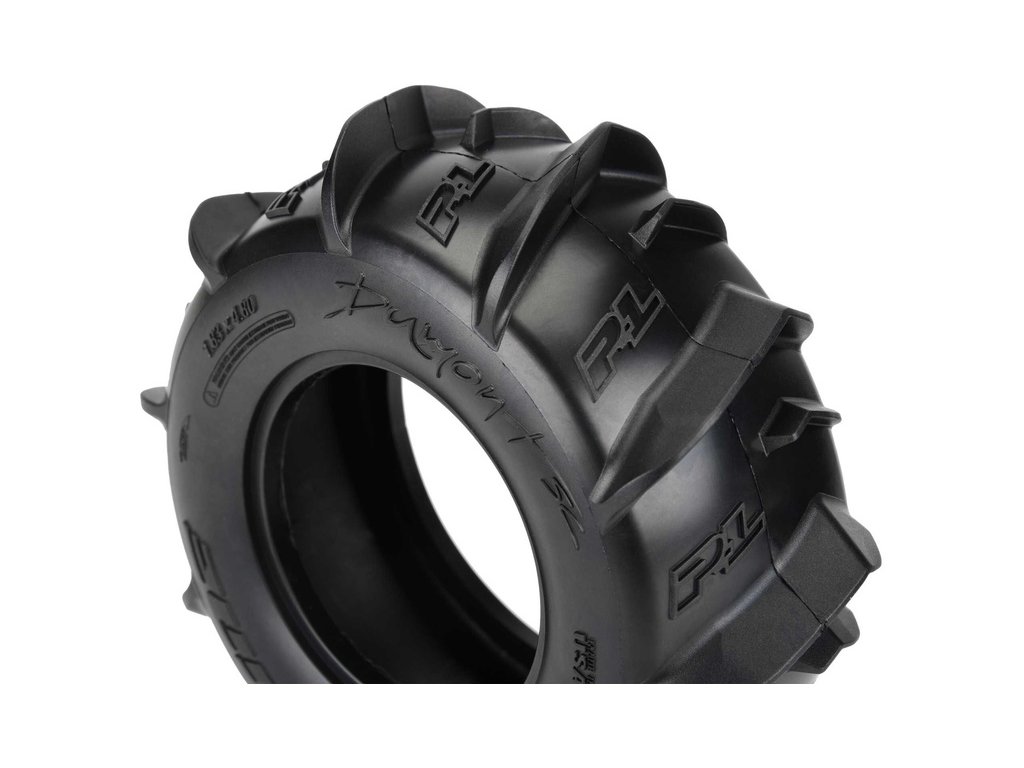 Pádlové pneumatiky Pro-line Dumont 2.2"/3.0" Sand/Snow Short Course, pro RC modely aut 1:10. Rozměry ⌀122x46mm. Směs M2 (střední). Vložka Open Cell.