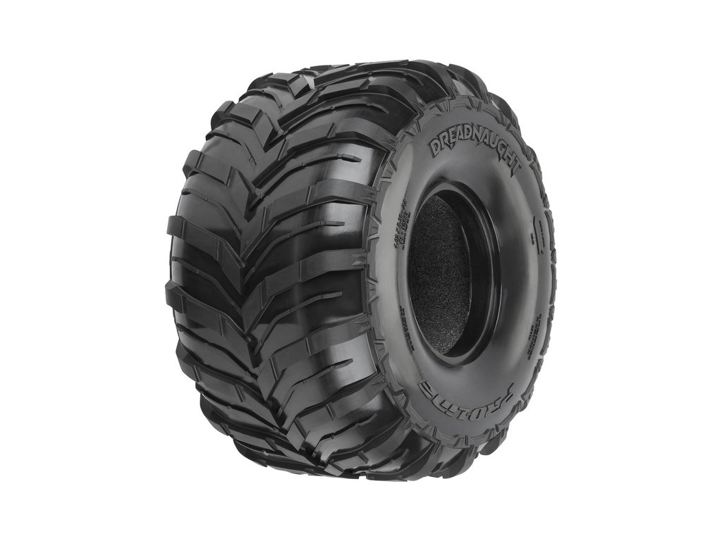 Pneumatiky Pro-line 2.6" Dreadnaught, pro RC modely aut 1:10 a 1:8, typu Monster Truck. Rozměry ⌀162x102mm. Směs M2 (střední). Vložka Open Cell. Ideální pro model Losi LMT 2.0.