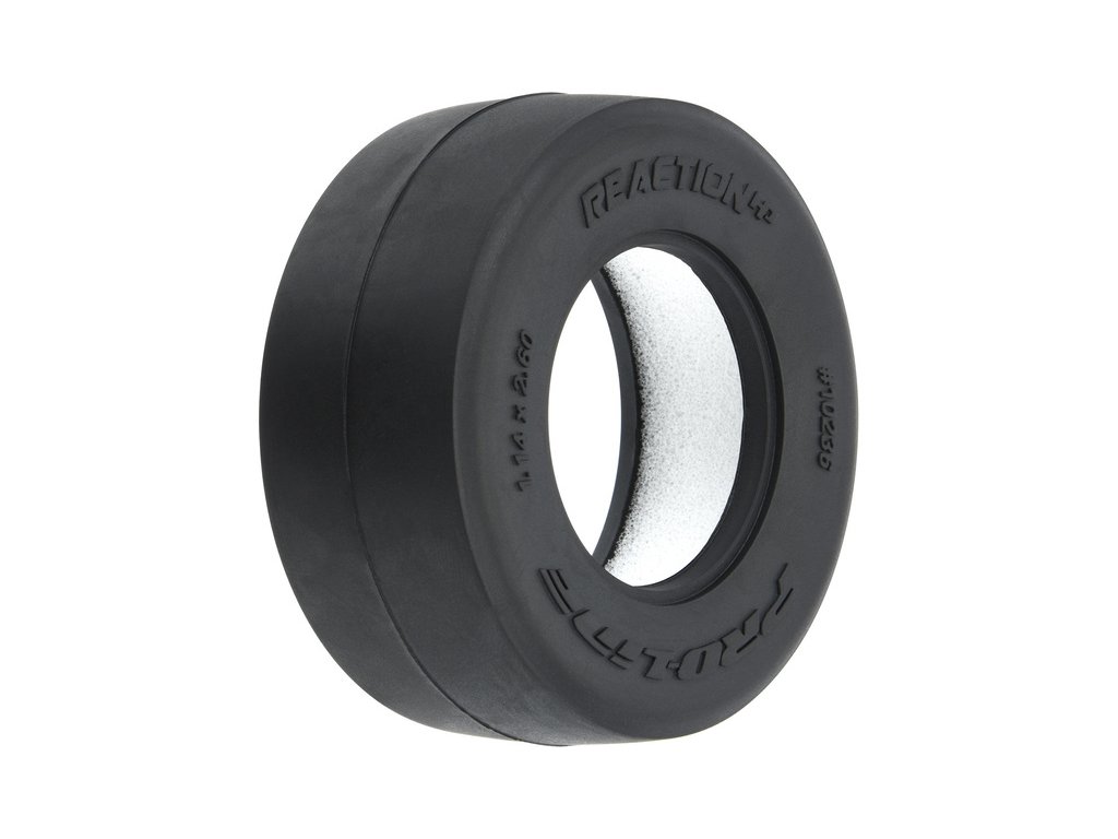 Závodní pneumatiky Pro-Line Reaction HP No-Prep Drag Racing BELTED (2 ks) ze super měkké směsi, se širší kontaktní plochou pro masivní přilnavost. Má pásovou výztuhu, která zvládne extrémní rychlost bez vyboulení! Vložky s otevřenými buňkami, průměr pneu 66mm, šířka 29mm. Pro auta 1:16.