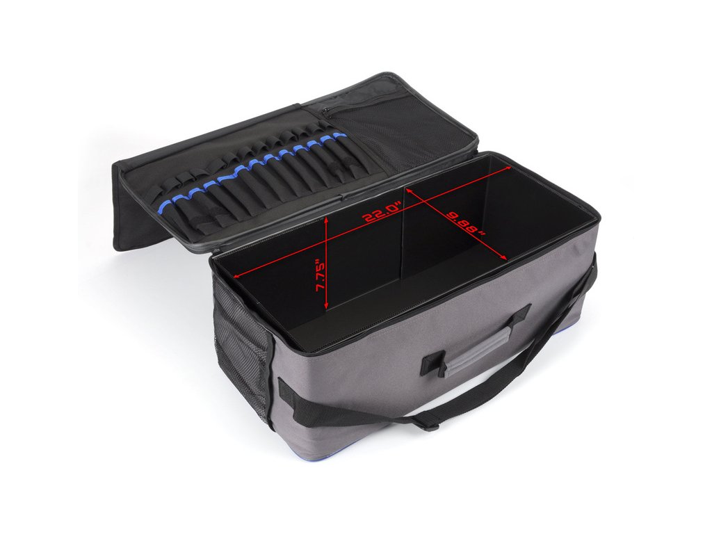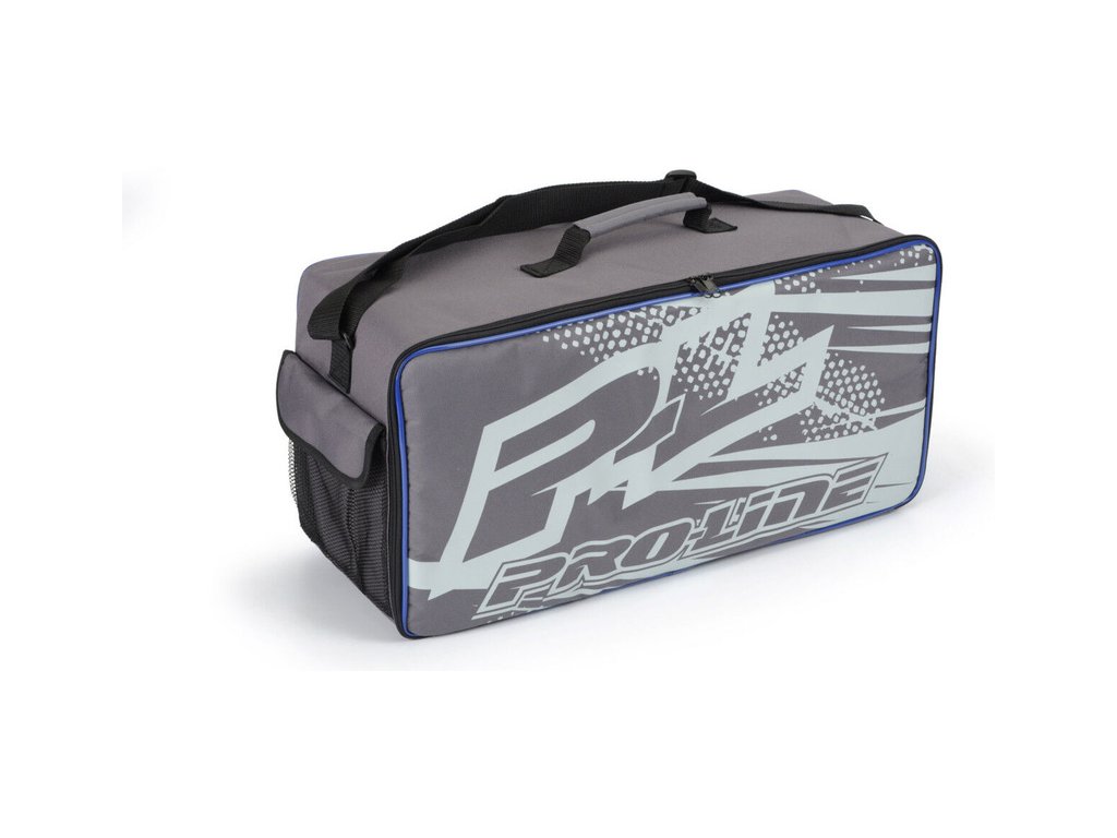 Pro-Line přepravní taška s držákem pro nářadí má kvalitní zipy a materiál, je vyztužena vlnitým plastem, který chrání vaše nářadí a drží tvar. Taška Track Bag je vybavena pouzdrem na nářadí se 13 kapsami a 3 průhlednými síťovými pouzdry. Délka 584mm, šířka 279mm.