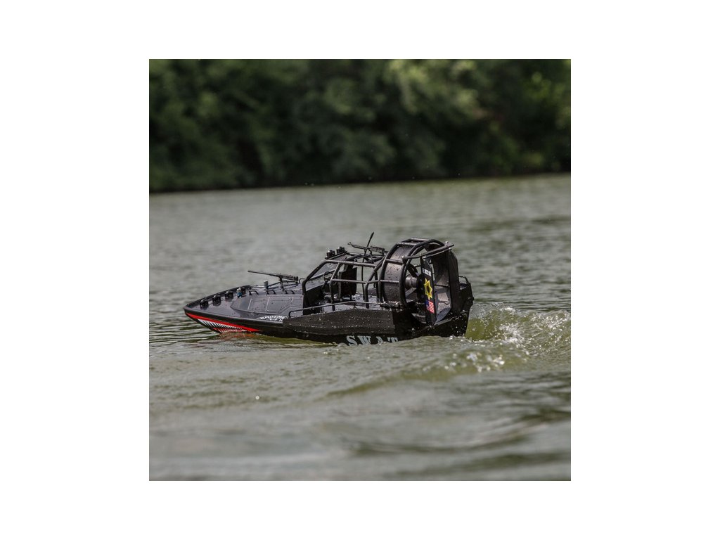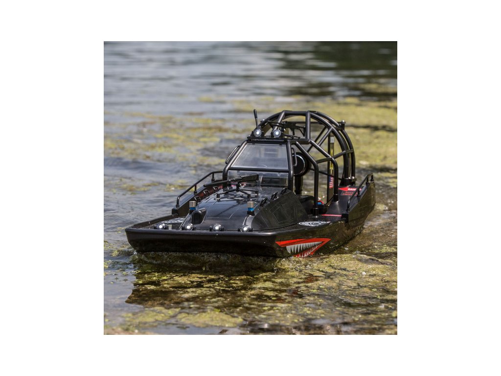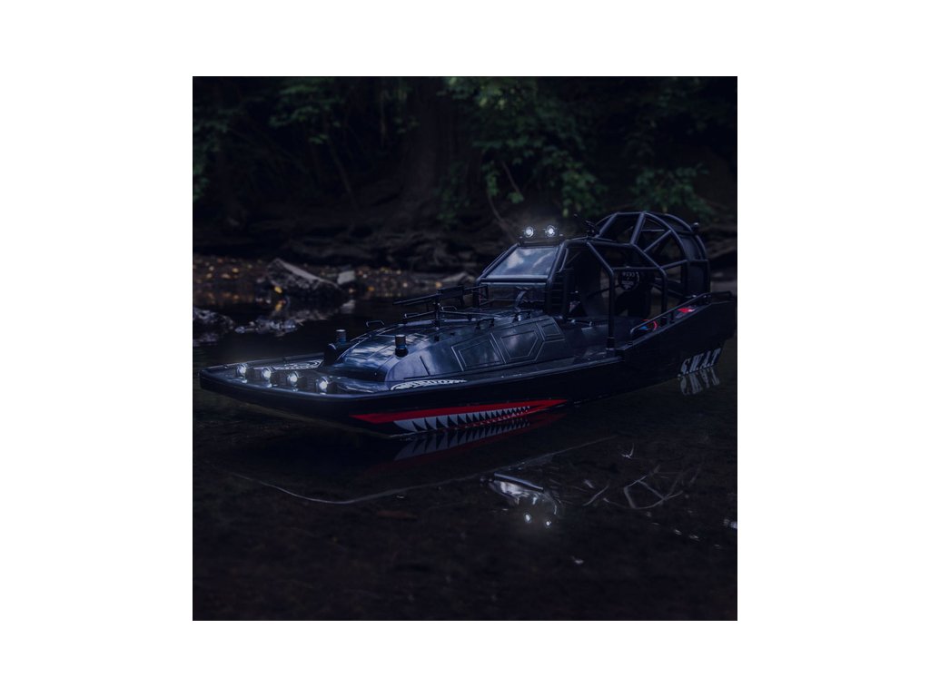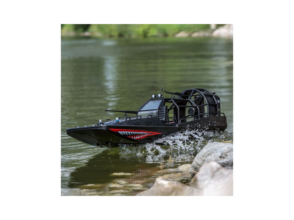 S lodí Pro-Boat Aerotrooper 25 Air Boat můžete jezdit prakticky kdekoli a to dokonce i po trávě! Díky výkonu střídavého motoru 2080kv 480 s 3-listou vrtulí který je umístěn v ochranné kleci, můžete prozkoumat velké vodní plochy s bažinami porostlé rostlinami, malé trávníkové pole a dokonce i sníh a led. Model je nabarven jako takticko/vojenský člun s odnímatelnými zbraněmi, tvarovaným zábradlím a klecí, které dodávají modelu na realismu. Navíc do kokpitu se sedadlem můžete umístit svoji akční figurku. Dvoudílné kompozitní kryt trupu zabrání průniku vody a udržuje celou elektroniku v bezpečí. LED světla jsou zárukou že zábava se nezastaví, ani když slunce zajde za obzor. Prozkoumejte nové terény s jedinečným plavidlem.