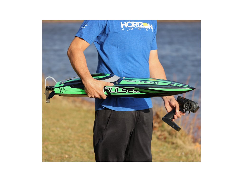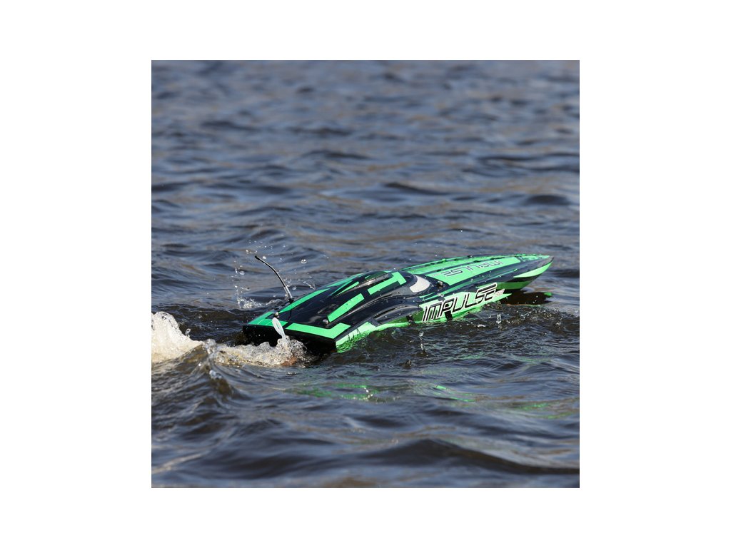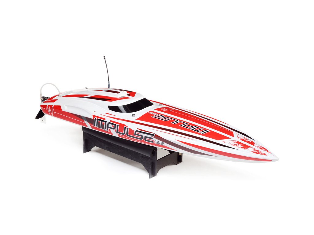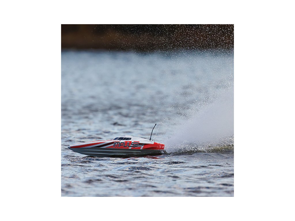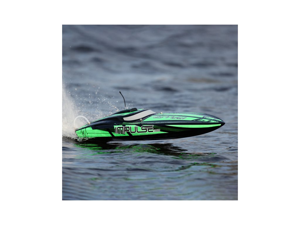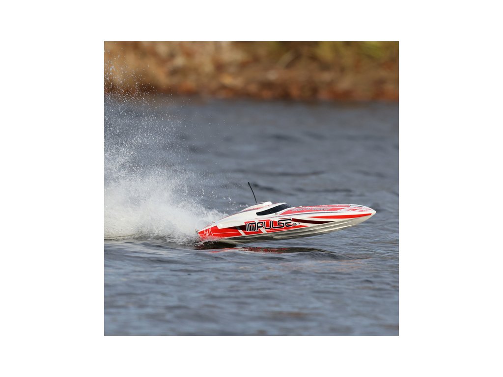 Rychlostní člun Impulse 32 s trupem typu Deep-V, představuje maximální výkon a kvalitu. Kombinuje soutěžní laminátový trup s výkonnou pohonnou jednotkou. Nebudete se moci nabažit extrémní rychlosti až 88km/hod. Vysoce výkonný vodou chlazený motor Spektrum™ 1900 KV spolu s vodou chlazeným regulátorem Smart Spektrum Firma™ 160A je schopen dát výkon až 3HP a dosáhne rychlost až 88km/hod! Díky Deep-V závodně koncipovanému laminátovému trupu je perfektně přilepen k vodě. Nastavitelné trimovací kormidla stabilizují loď při neuvěřitelně vysokých rychlostech. A to všechno při zachování přesného ovládání i za těch nejtvrdších podmínek na vodě.