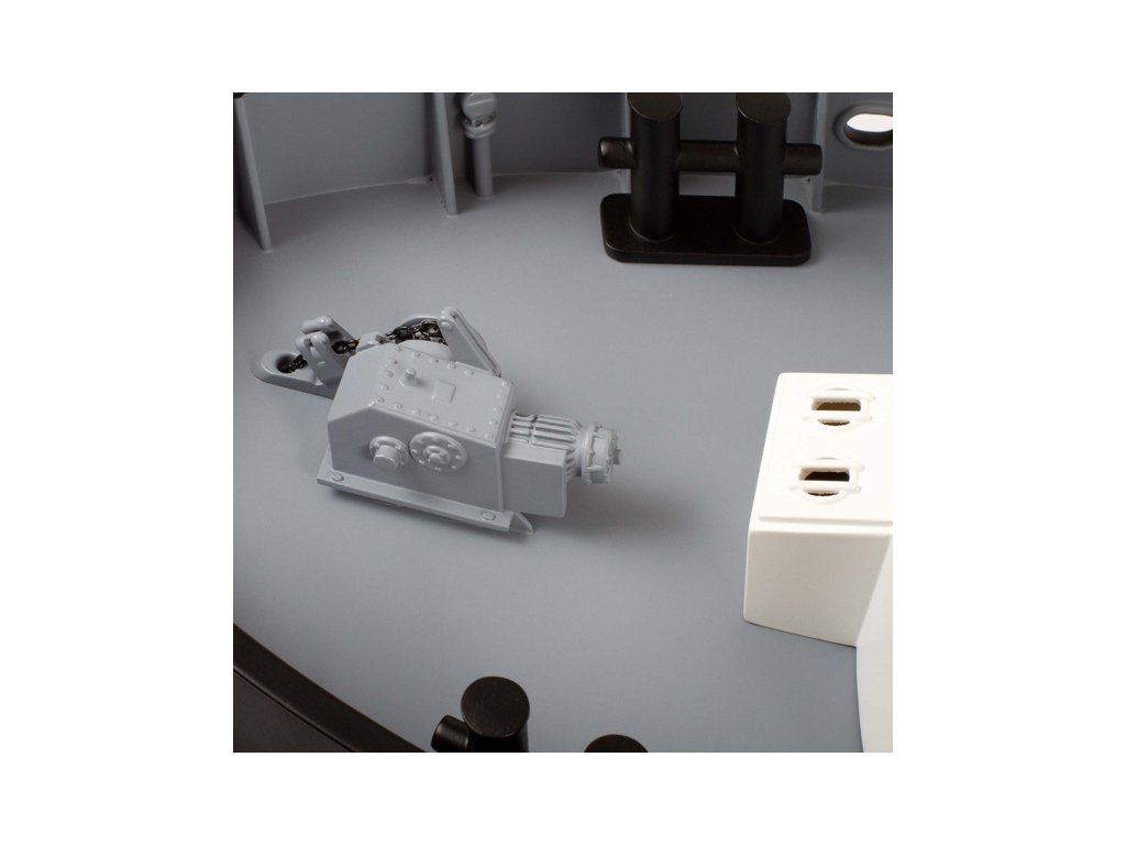 Jednodílný trup je vyroben z odolného plastového ABS materiálu. Pro lepší orientaci je na bočních stranách trupu LED osvětlení, stejně jako na stěžni, pro úžasné večerní projížďky. Na modelu jsou dvě vodní děla, která můžete uvést do provozu pomocí volitelné vodní pumpy (prodává se samostatně). Díky obsaženému výstavnímu stojanu se bude loď vyjímat nejen na vodě, ale i na stole, či poličce.
