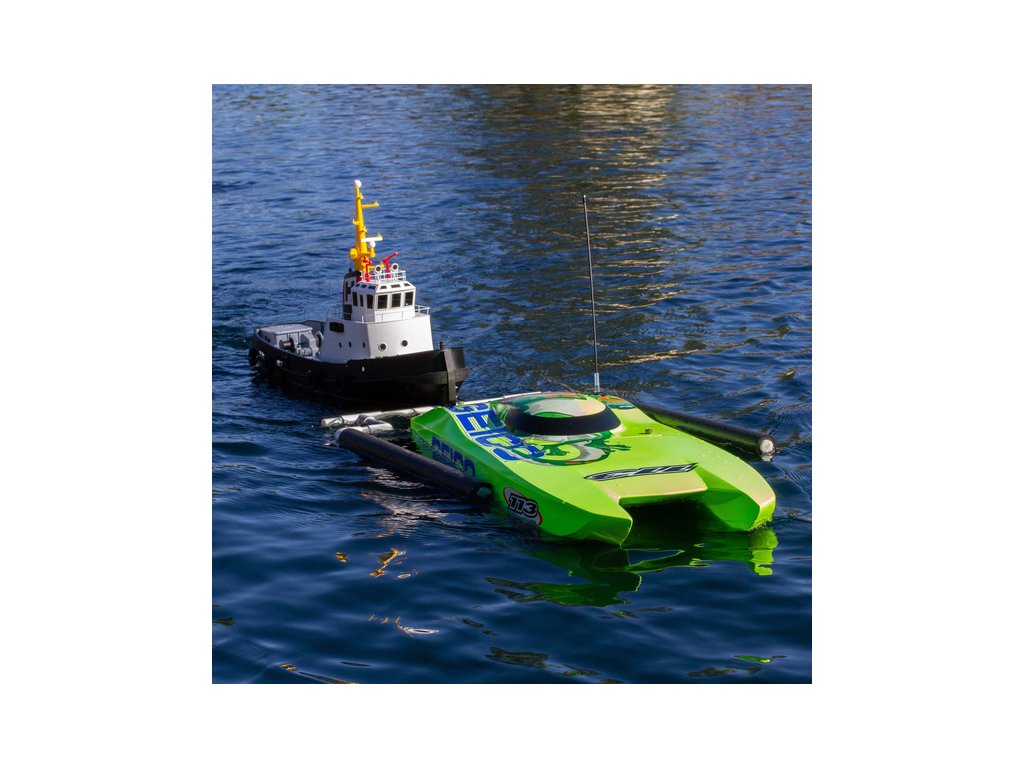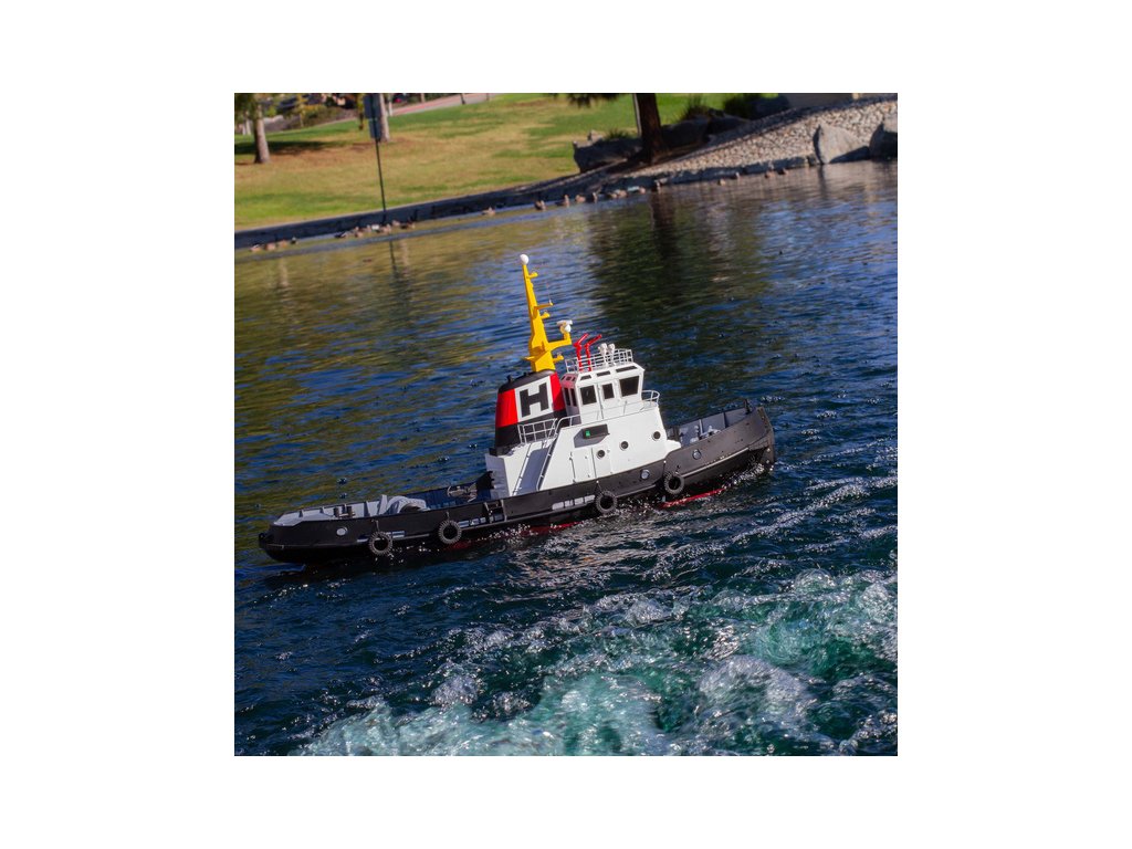 RC model lodi přístavního remorkéru Proboat Horizon 30" RTR - zmenšená polomaketa s množstvím detailů. Lze využít jako vyprošťovací loď (odnímatelná ramena v balení). LED osvětlení stožáru, s pozičním osvětlením. Volitelně lze instalovat pumpu pro funkční vodní děla. Silný stejnosměrný pohon.