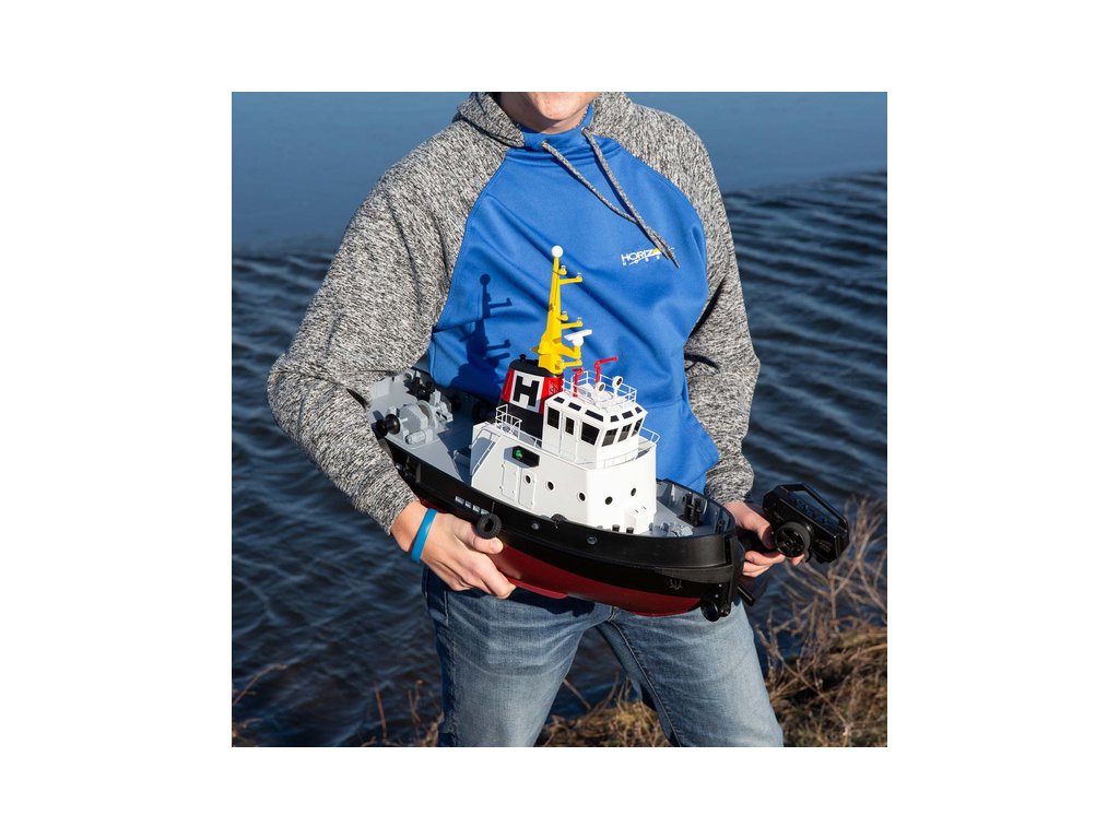 Proboat Horizon 30" je polomaketa přístavního remorkéru, která Vám umožní stát se kapitánem na své vlastní lodi. Tento krásný člun můžete nejen použít k projížďce po vodní hladině, ale také jako vyprošťovací lodičku pro rychlostní RC modely lodí, až do velikosti 48". Díky možnosti montáže odnímatelných ramen, můžete zatlačit model který vám uvízl na hladině, ke břehu. K tomu je přístavní remorkér vybaven silným stejnosměrným motorem řady 700 a 40A regulátorem s podporou napájení 3S LiPol. Pro spolehlivé ovládání je přibalen vysílač Horizon 2.4GHz.