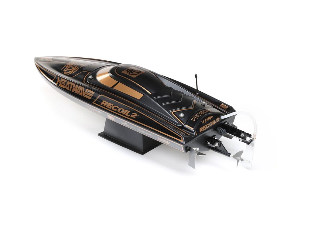 Recoil 2 V2 přináší ohromné vzrušení s novým agresivním stylem a pokročilejšími funkcemi elektroniky, jako samočinným otočením při převrácení a vysokými výkony. Střídavý motor Spektrum™ 2300 Kv Mariner spolu s vysoce výkonným 100 A regulátorem Spektrum, dokáže vyvinout rychlost až na hranici téměř šedesáti kilometrů za hodinu. Trup je vyroben z odolného materiálu ABS a má hotové zbarvení. Loď je dlouhá 660 mm a je kompletně vybavena pohonem a elektronikou. Loď výborně drží směr, rychle akceleruje ze zatáčky a má vysokou stabilitu. Tak jako všechny další modely ProBoat, je i Recoil 2 V2 připraven k jízdě. Obsažena je 4-kanálová volantová RC souprava Horizon 2,4 GHz.
