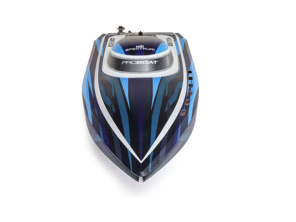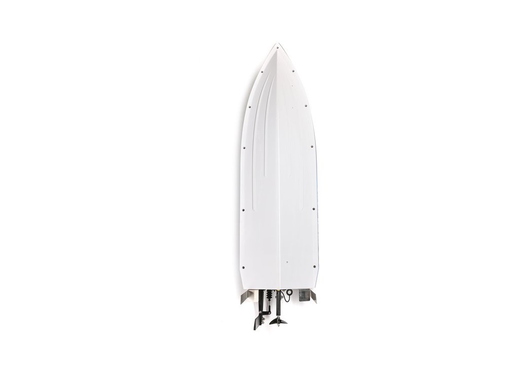 Srdcem modelu je vodou chlazený výkonný střídavý motor 3542 2500Kv typu outrunner a regulátor Spektrum 50A Marine. Elegantní, aerodynamický trup ve tvaru V snadno projede vlnami a je vyroben z odolného ABS materiálu. Součástí trupu je zaplavovací komora, která se při převrácení modelu během pár sekund zaplní vodou, čímž dojde k automatickému otočení (funkce Self-righting) a vy se tak můžete rychle vrátit zpět do akce. V případě, že při jízdě zavadíte o kámen či dno, kormidlo se odklopí, místo toho, aby se zlomilo. Stačí jej pouze zatlačit zpět na místo a utáhnout. Snadná je také výměna akumulátoru, který se upevňuje suchým zipem do posuvného držáku SSL (Strap, Slide, Lock). Přiložený akumulátor nabijete obsaženým USB-C nabíječem s automatikou. Pro napájení nabíječe můžete použít libovolný USB-C adaptér (není obsahem balení).