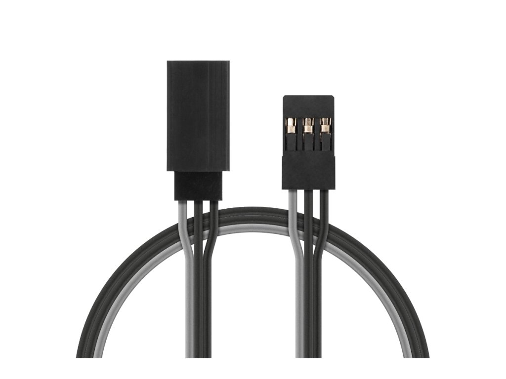 Plochý prodlužovací kabel s konektory JR o délce 15cm s PVC izolací v elegantní černo/šedé barvě. Průřez vodičů 0,33mm2 / 22AWG.