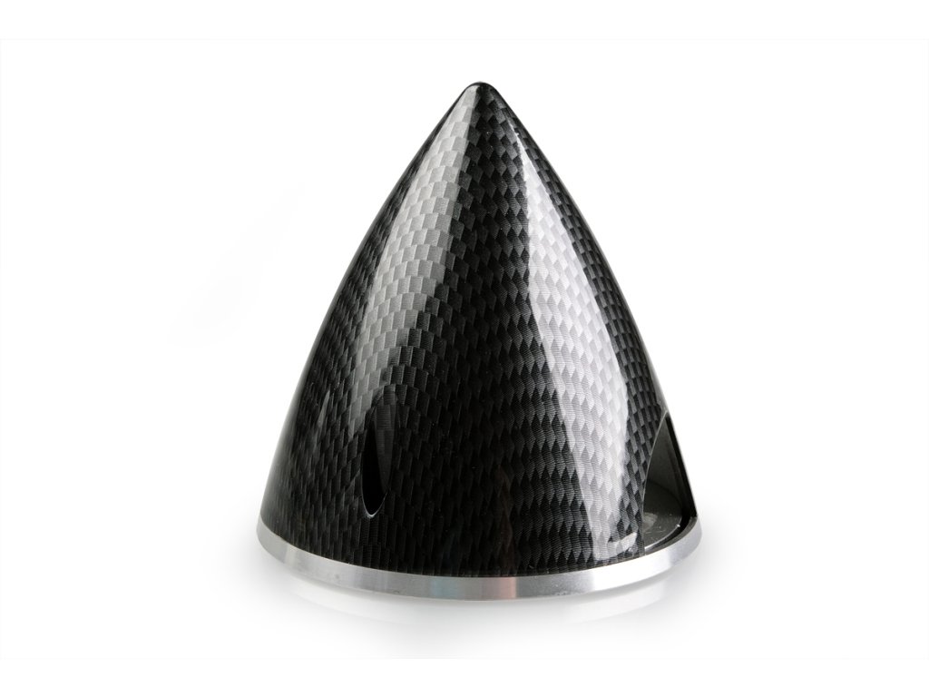 Plastový kužel (imitace uhlíkové tkaniny) pro dvoulistou vrtuli s duralovou zadní deskou.