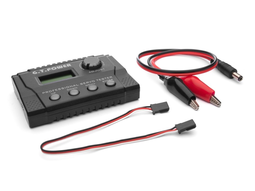Balení obsahuje: Profi servotester, napájecí kabel se souosým konektorem a krokosvorkami, servokabel, návod.