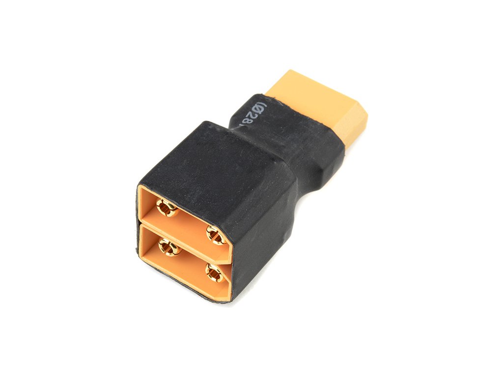 Propojka Y paralelní s konektory XT-90. Dva přístrojové (pro baterie) a jeden bateriový konektor (do regulátoru).