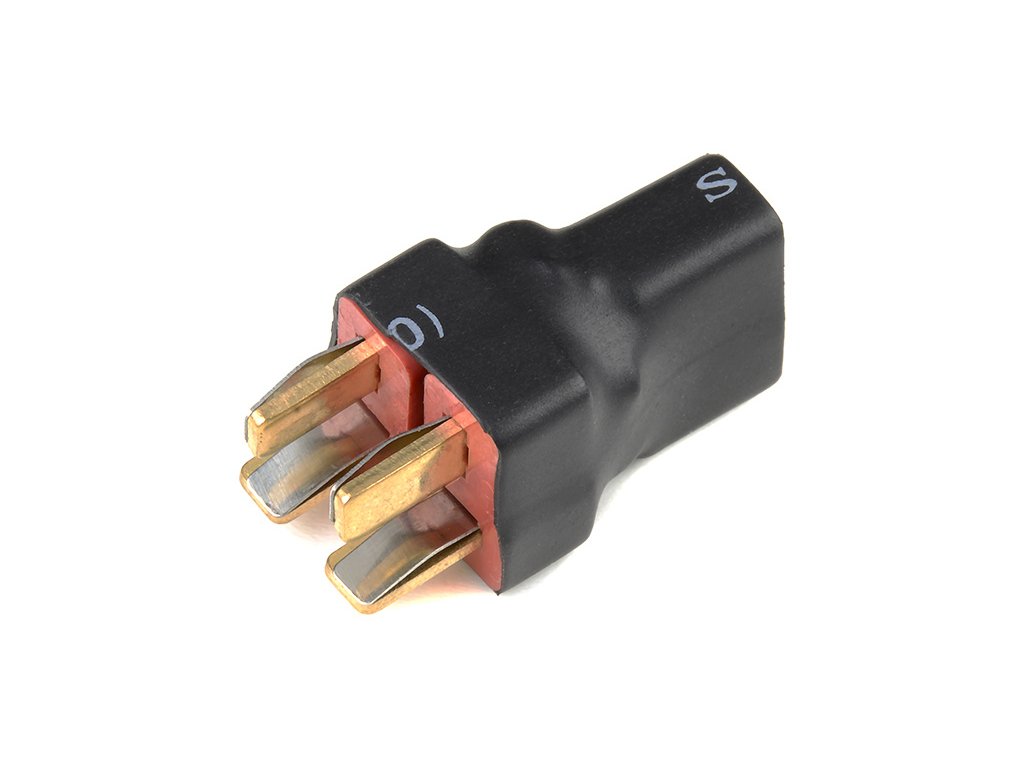 Propojka Y sériová s konektory Deans. Dva přístrojové (pro baterie) a jeden bateriový konektor (do regulátoru). Do série se mohou zapojovat pouze akumulátory stejného typu, stejného napětí a stejné kapacity!