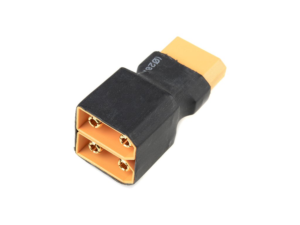Propojka Y sériová s konektory XT-90. Dva přístrojové (pro baterie) a jeden bateriový konektor (do regulátoru). Do série se mohou zapojovat pouze akumulátory stejného typu, stejného napětí a stejné kapacity!