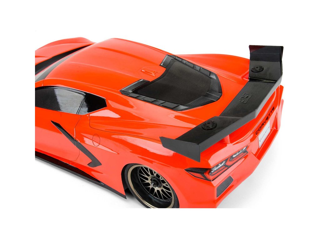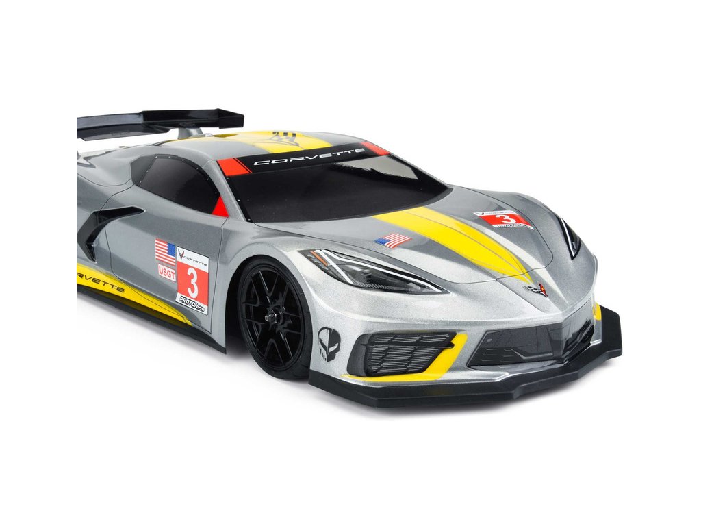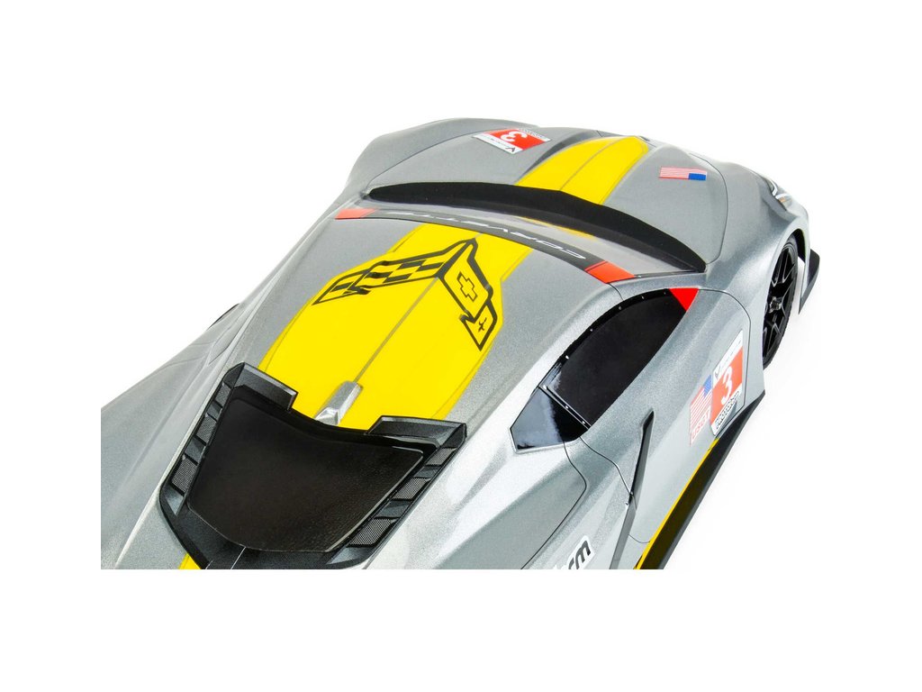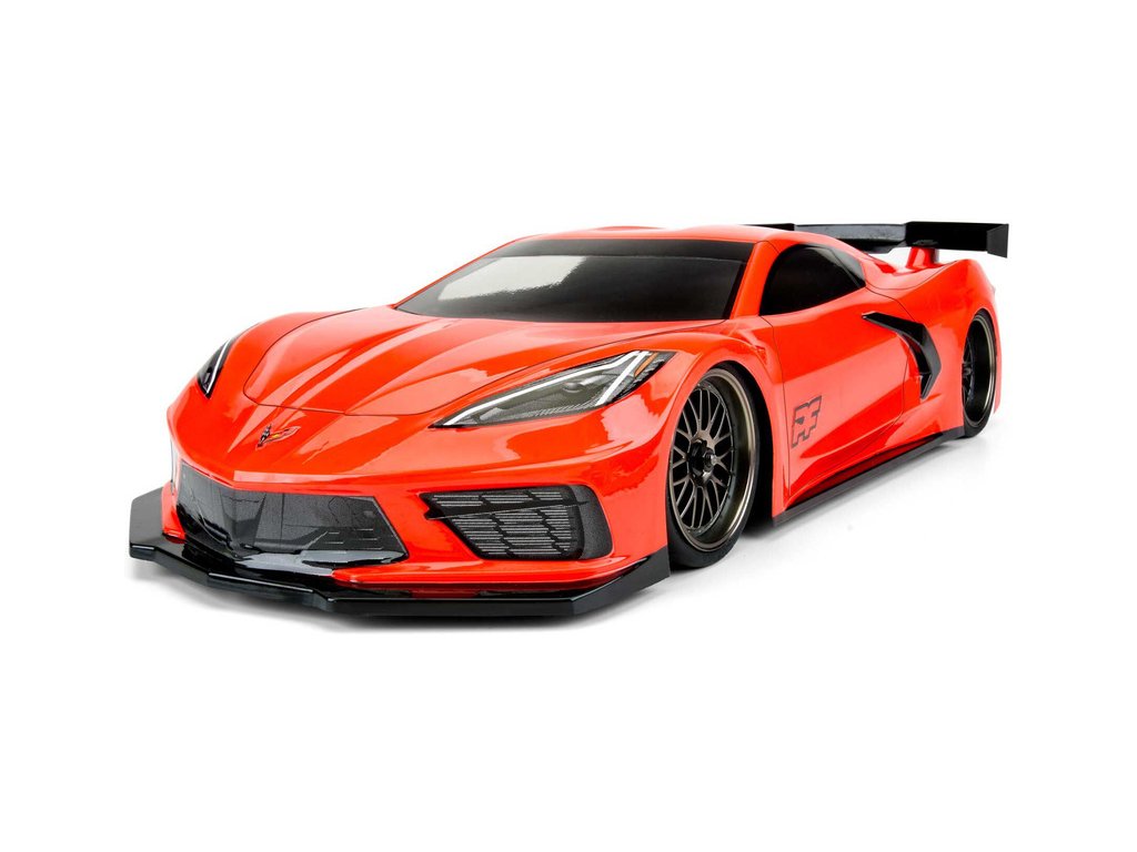 Karosérie Chevrolet Corvette C8, je schválena pro soutěže podle pravidel USGT, vyrábí se z vysoce kvalitního polykarbonátu. Obsáhlý obtiskový aršík včetně loga na čelní sklo a registračních značek, příslušenství pro upevnění křídla a přestřikovací fólie pro lak a poté odlupování jsou jako vždy součástí dodávky.