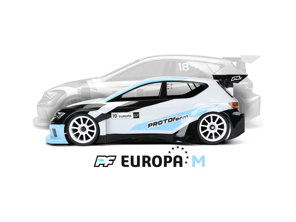 Karosérie Protoform čirá Europa 190mm Touring Car (FWD Class) pro RC modely aut 1:10, rozvor 255-260mm, délka 423mm, šířka 193mm. Vyrobeno z odolného lexanu, montážní příslušenství.