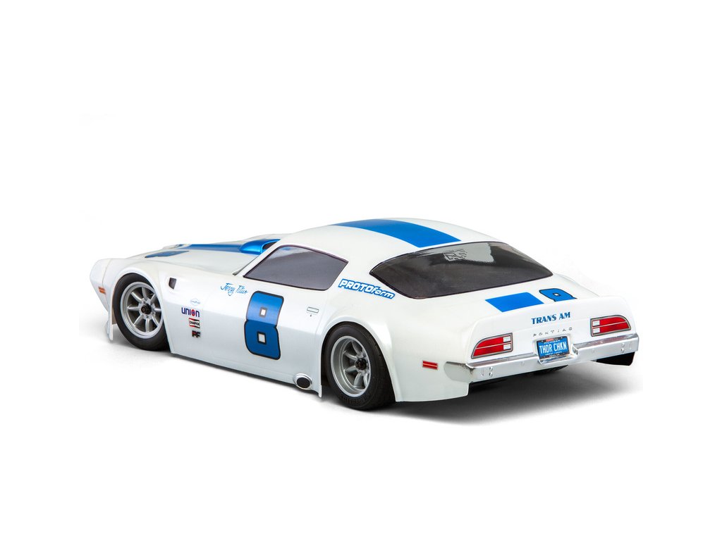 Závody třídy Vintage Trams Am se v posledních několika letech objevily jako příležitost pro závodníky proniknout do silničních RC závodů v realistickém měřítku. Pontiac® Firebird Trans Am byl jedním z charakteristických vozů bývalé plnohodnotné série a nyní PROTOform zachytil jeho typický vzhled ve verzi modelu z roku 1971. Od jeho agresivní přední masky, přes zadní spoiler až po maketové sání, nebyl přehlédnut žádný detail. Přední část je vylisována samostatně a po montáži pomocí 2mm šroubů nebo lepidla se stává nedílnou součástí karosérie. Protože tato část je nejnáchylnější k závodnímu opotřebení, je součástí i náhradní předek karosérie. Tento oficiálně licencovaný produkt je vyroben z pevného materiálu 0,76mm Lexanu® a splňuje všechna pravidla třídy VTA. Průhledná karoserie je dodávána s ochrannou přestříkanou fólií, maskami na okna, detailním obtiskovým archem, který vám umožní zvolit styl vašeho Firebirdu jako plnohodnotného závodního auta nebo pouličního stroje. Zachyťte léta slávy amerických silničních závodů s ’71 Trans Am® od PROTOform!