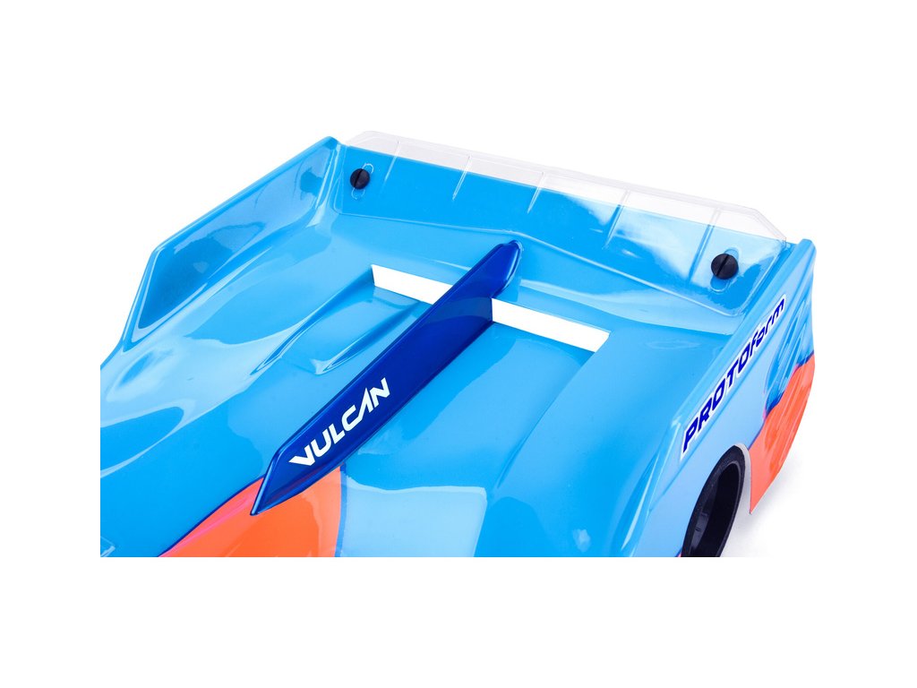 Aktualizovaná karoserie Swift-235 Pro-10 s novými funkce a pro širší škálu podvozků 1:10 Pan Car. Nová karoserie Vulcan Pro-10 se inspirovala aerodynamikou svého většího sourozence, vítěze světového šampionátu R19. Byla přidána středová plocha pro zvýšení stability při vysokých rychlostech na větších venkovních tratích, zatímco tvarované boční panely zvyšují boční stabilitu. Je obsažena přídavná nastavitelná kluzná klapka. Široký rozchod kol a dlouhé zadní boční panely Vulcanu měří 227 mm vpředu a 239 mm vzadu a jistě se hodí pro téměř jakýkoli podvozek Pro-10 po celém světě, zatímco dvě výšky ozdobných linií jsou určeny pro různé velikosti pneumatik.