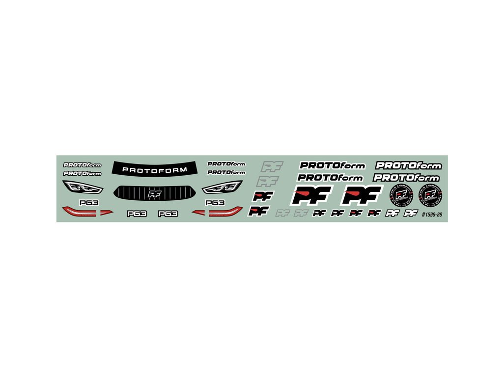 Balení obsahuje čirou karoserii PROTOform 1:28 P63 s přestříkávací fólií, obtiskový arch, montážní příslušenství křídla.