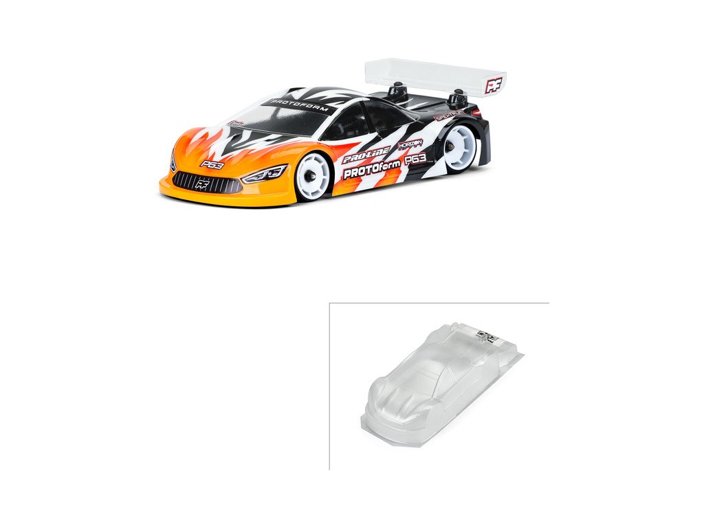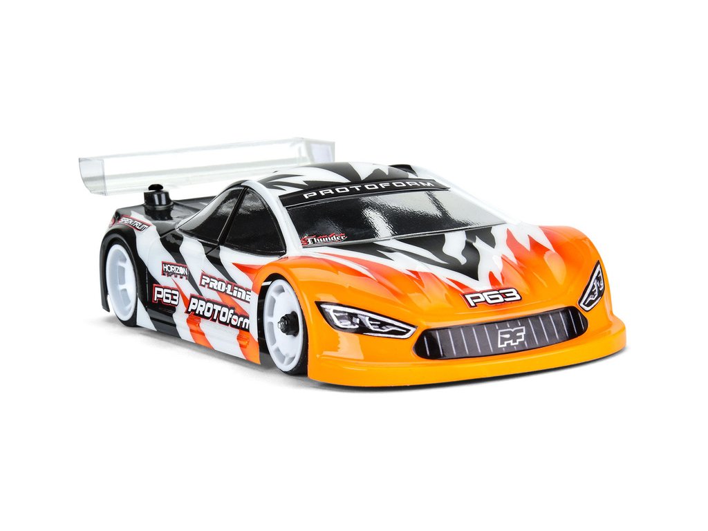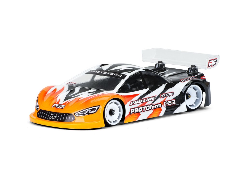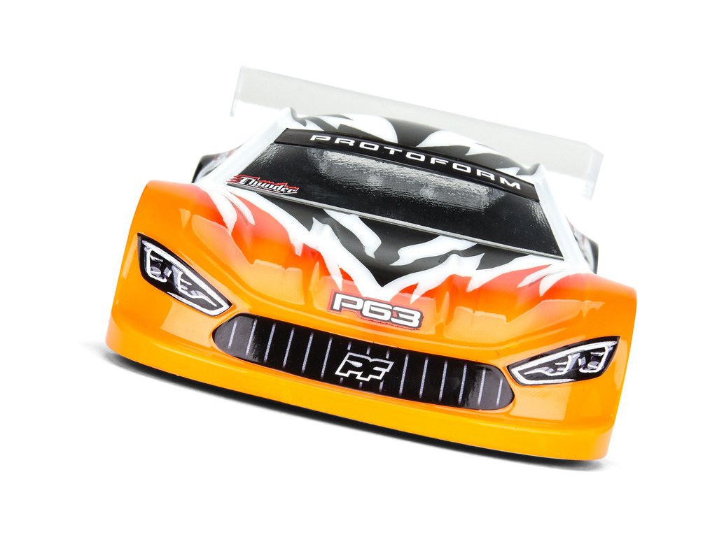 PROTOform karosérie 1:28 P63 (rozvor 98mm): Mini-Z je nejnovější aerodynamické řešení PROTOform pro vysoce soutěžní závody elektrických cestovních vozů. Tato aerodynamická karoserie s ultra vysokým přítlakem a super nízkým těžištěm byla navržena, aby vyhovovala závodním třídám Super Stock a Modified 1:28. Je vyrobena z lehkého, vysoce odolného polykarbonátu. Součástí balení jsou šrouby pro upevnění křídla.